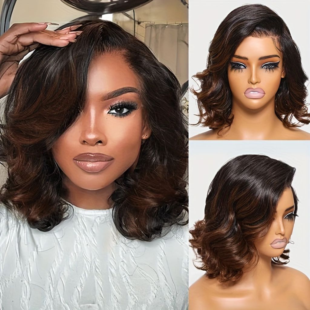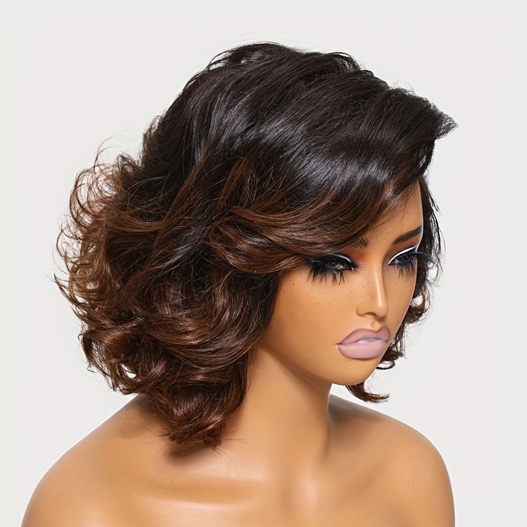 UNice 13x4 Lace Frontal Human Hair Wig Bye Bye Knots Chestnut Brown Ombre Spiral Curls Pre Everything Lace Wig