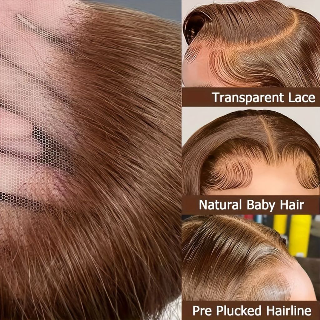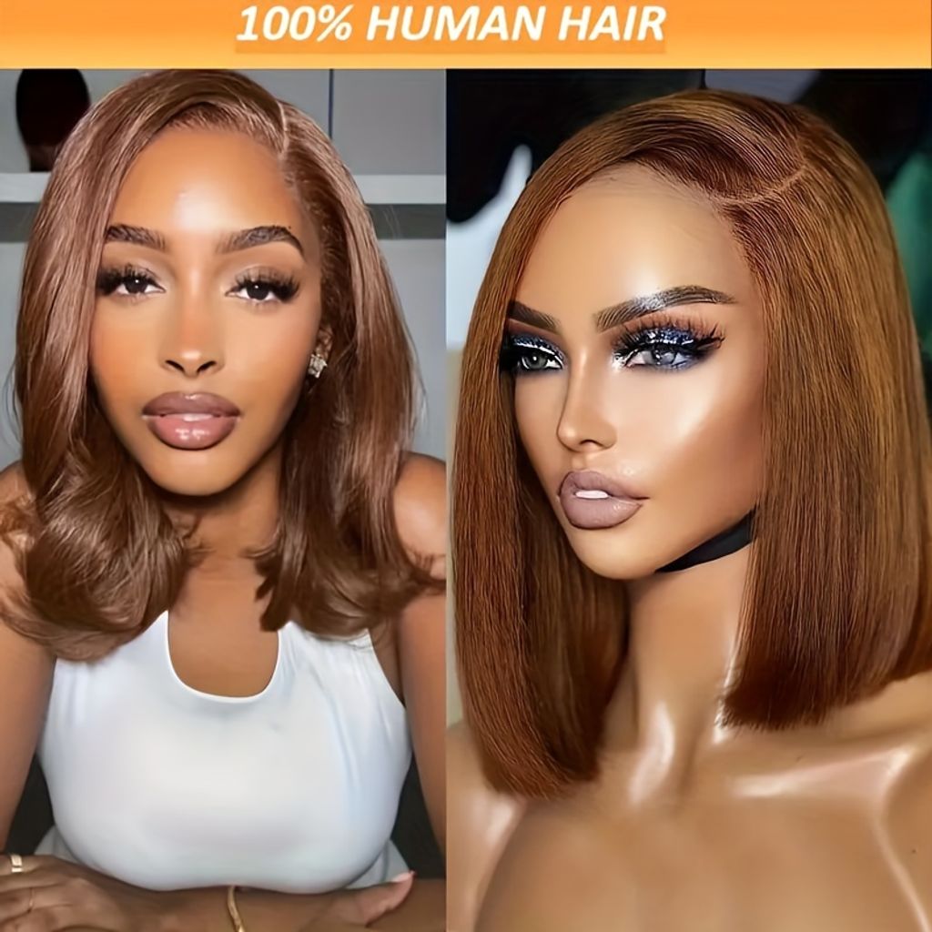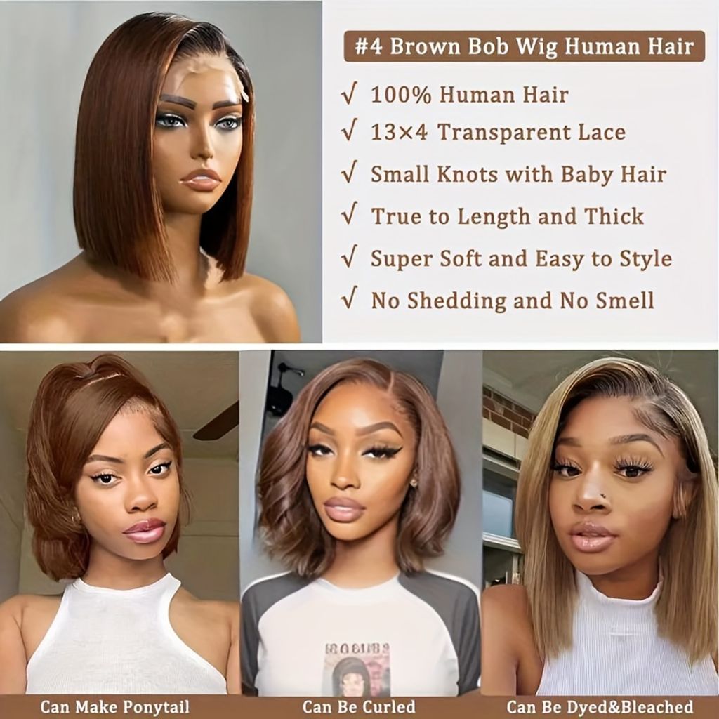 13x4 Straight Brown Bob Wig Human Hair 200% Swiss HD Lace Chocolate Brown Straight Lace Frontal Wig For Women Pre Plucked Straight Wig With Baby Hair Full Edges #4 Colored Human Hair Lace Wig