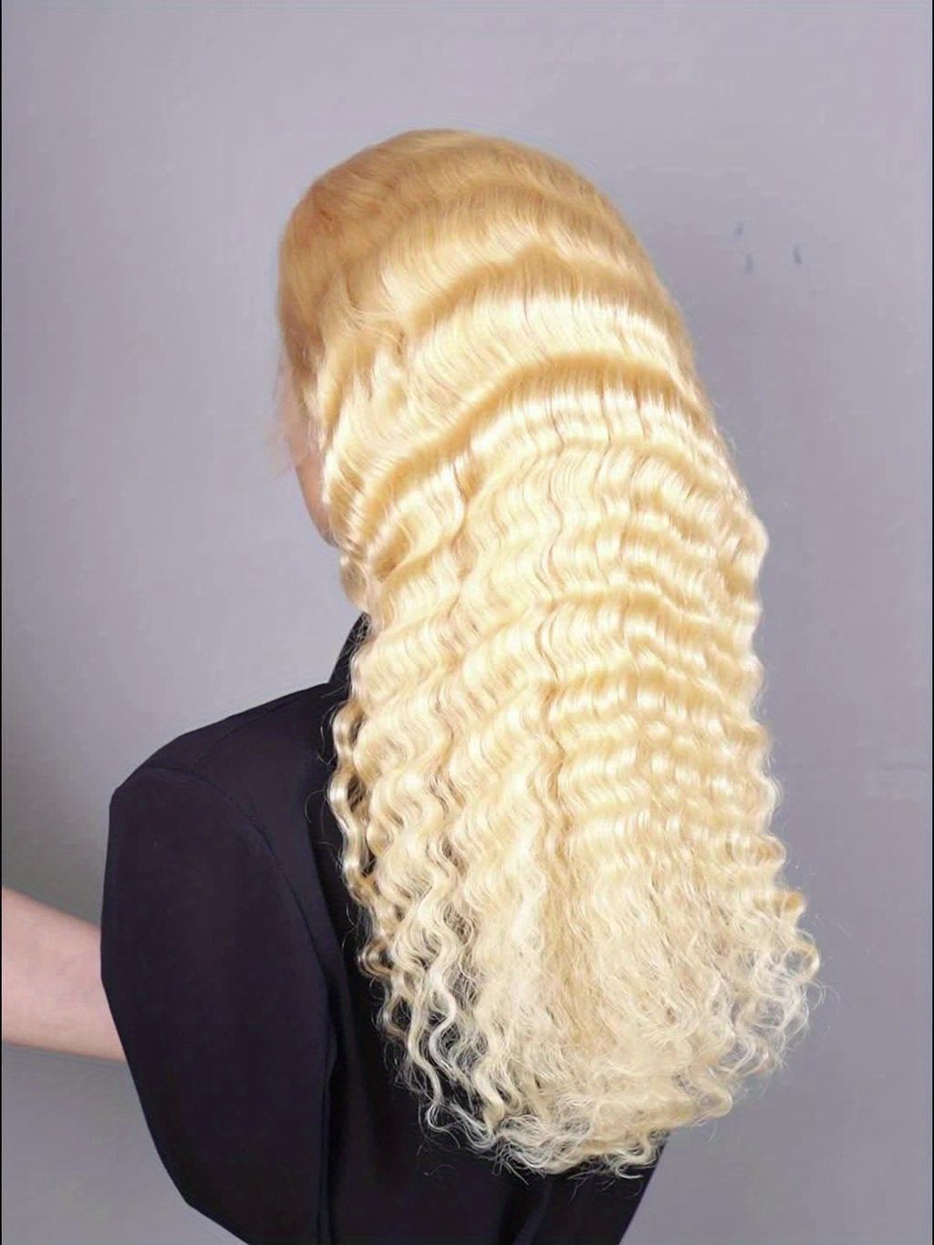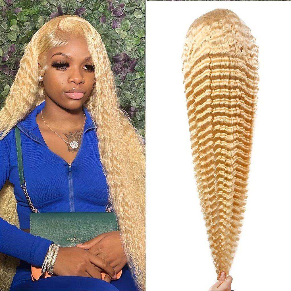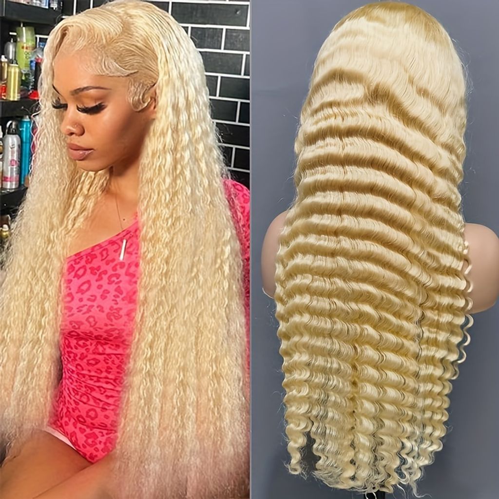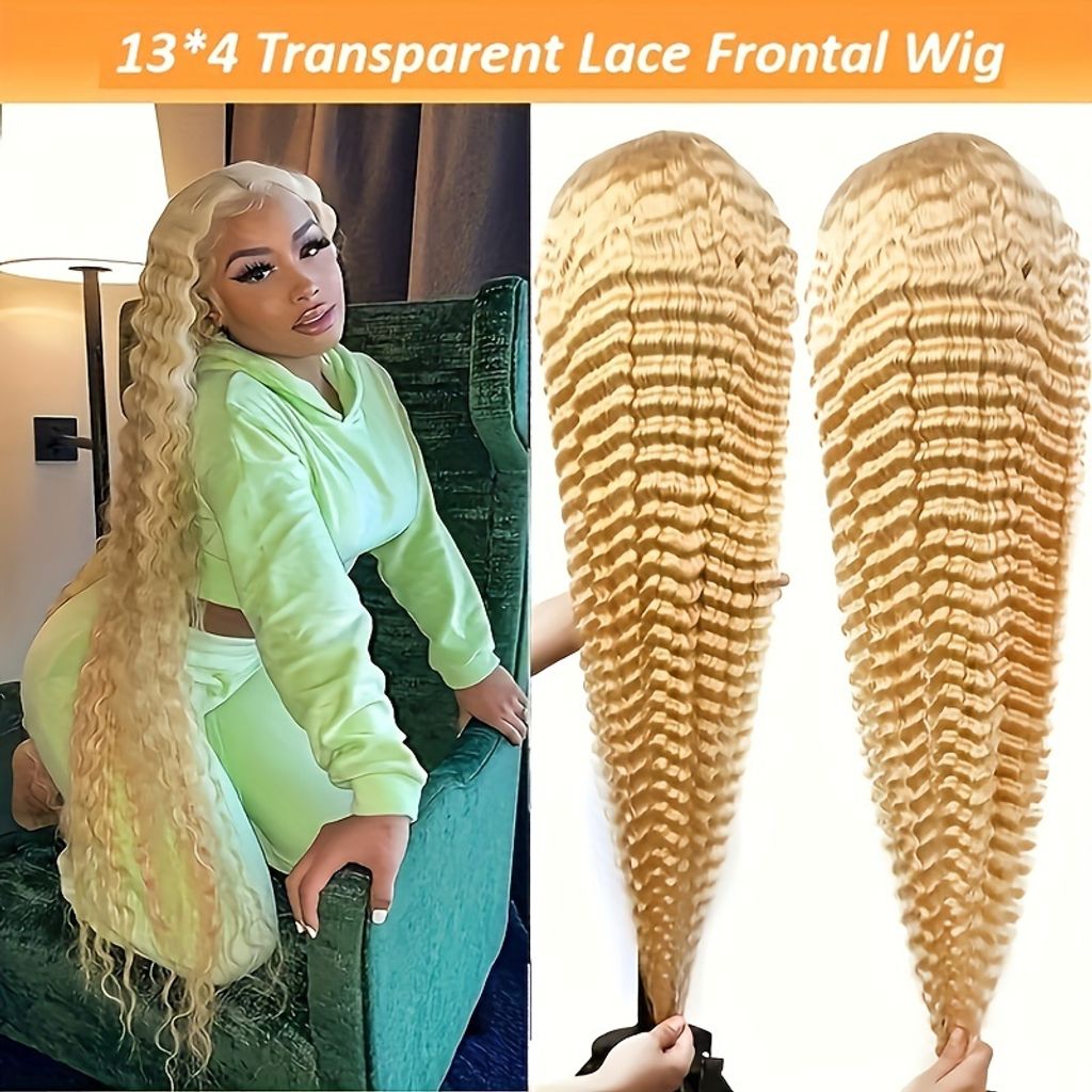13x4 Transparent Lace Wig 150% Density Blonde Deep Wave Lace Front Wig - Glueless Water Wave Human Hair Wig For Women