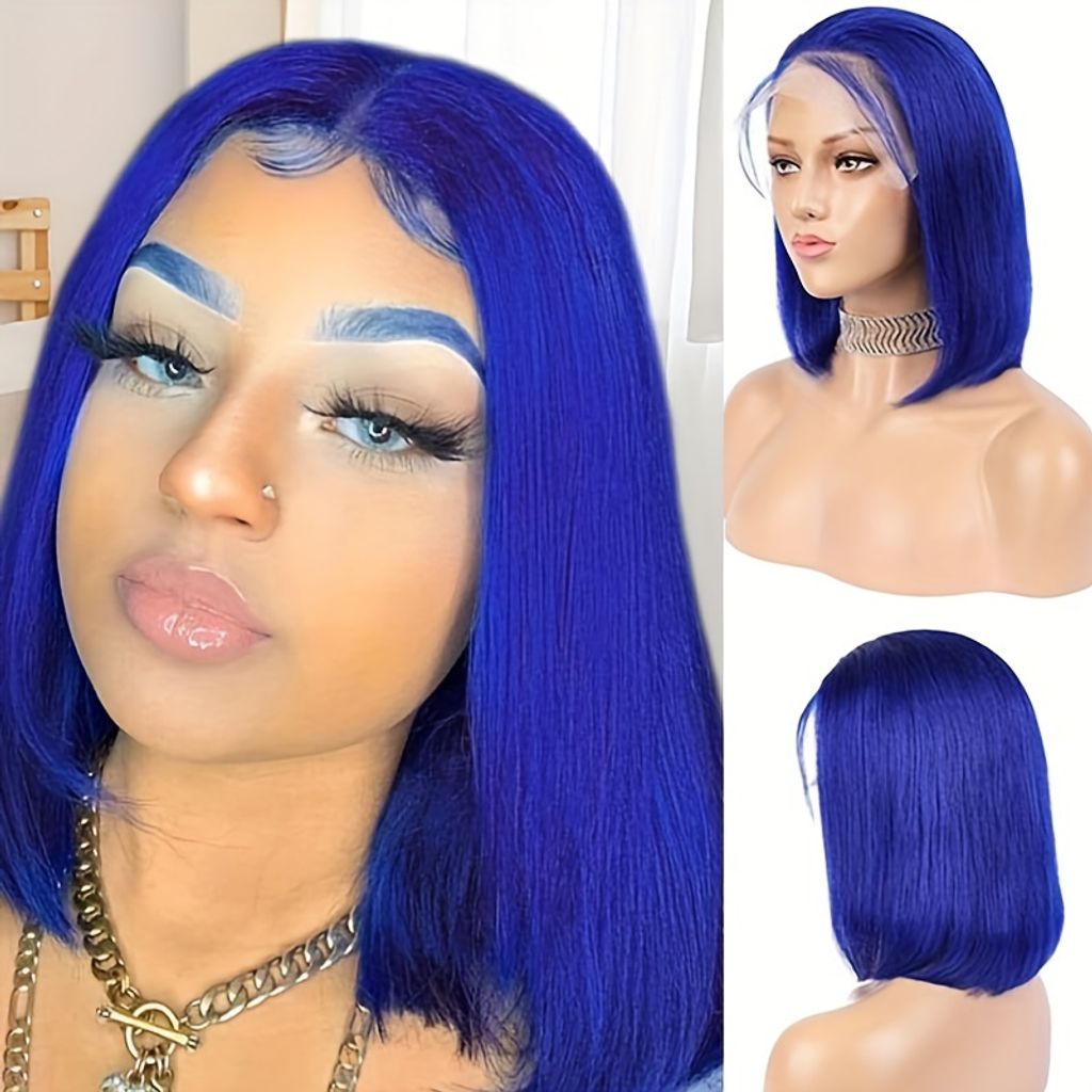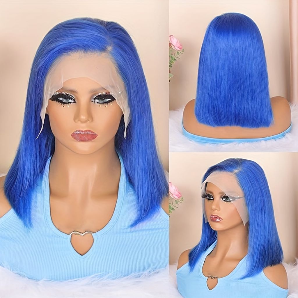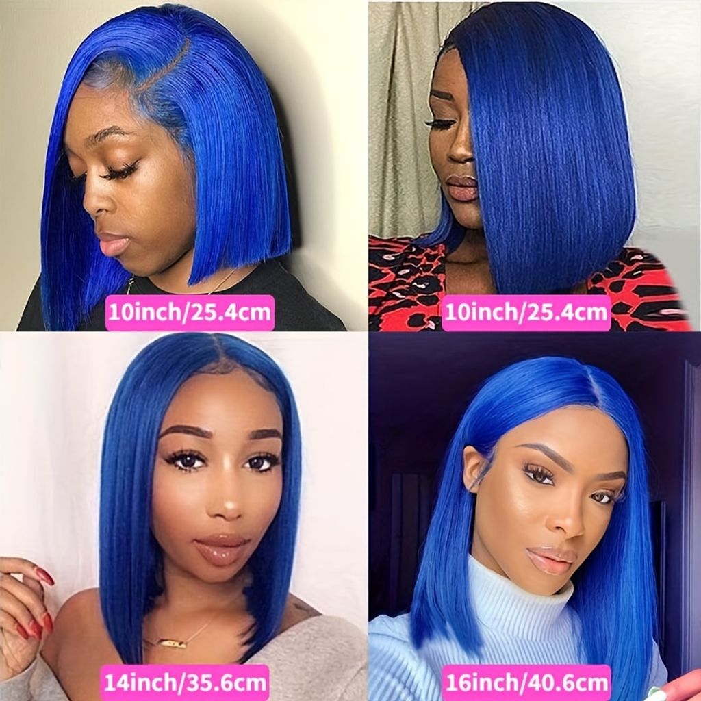 180% Density Short Bob Wigs - 13x4 HD Frontal Lace Wig with Transparent Lace, Natural Hairline, Baby Hair, 100% Unprocessed Human Virgin Hair, Glueless Frontal, Blue Color, Realistic Hairline, Soft and Breathable, No Shedding, No Tangle, Long-Lasting, Perfect for Women