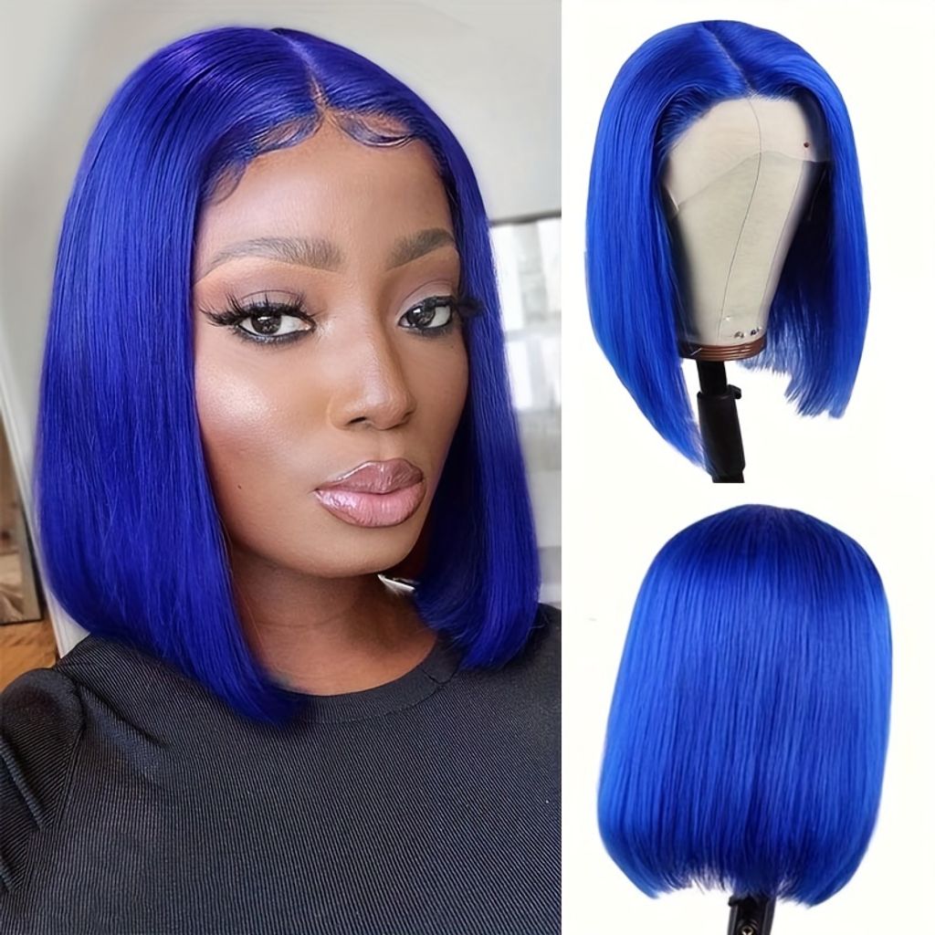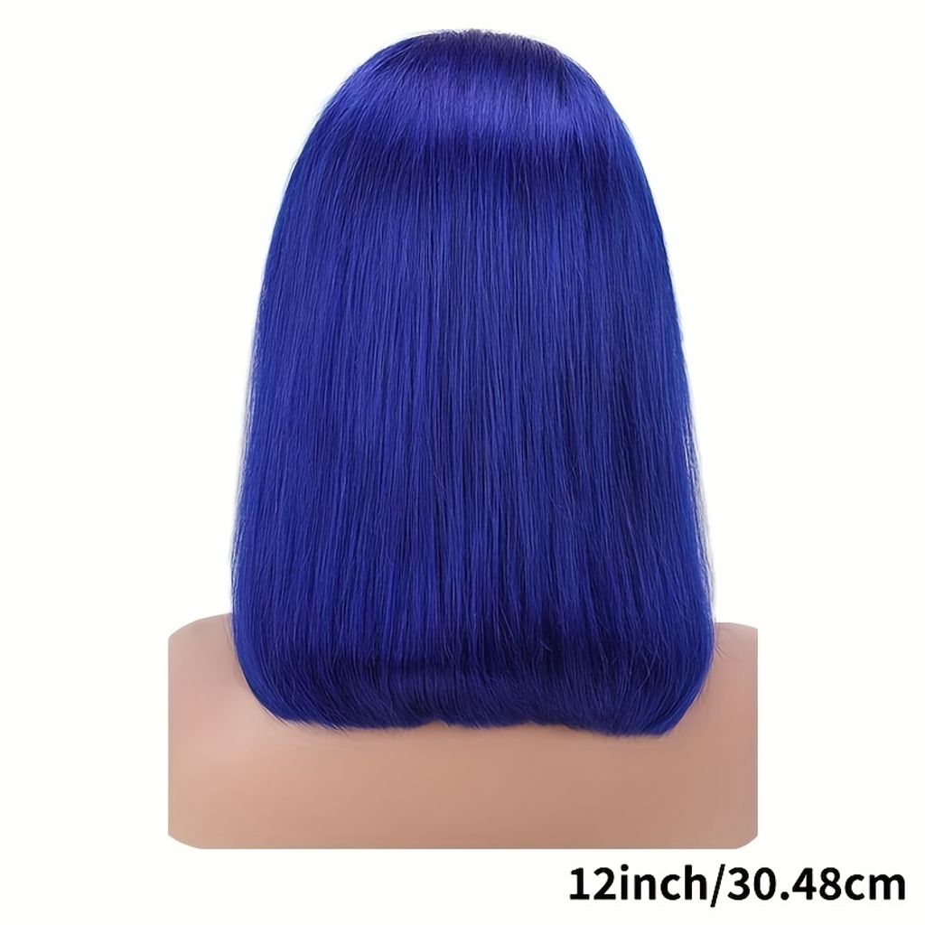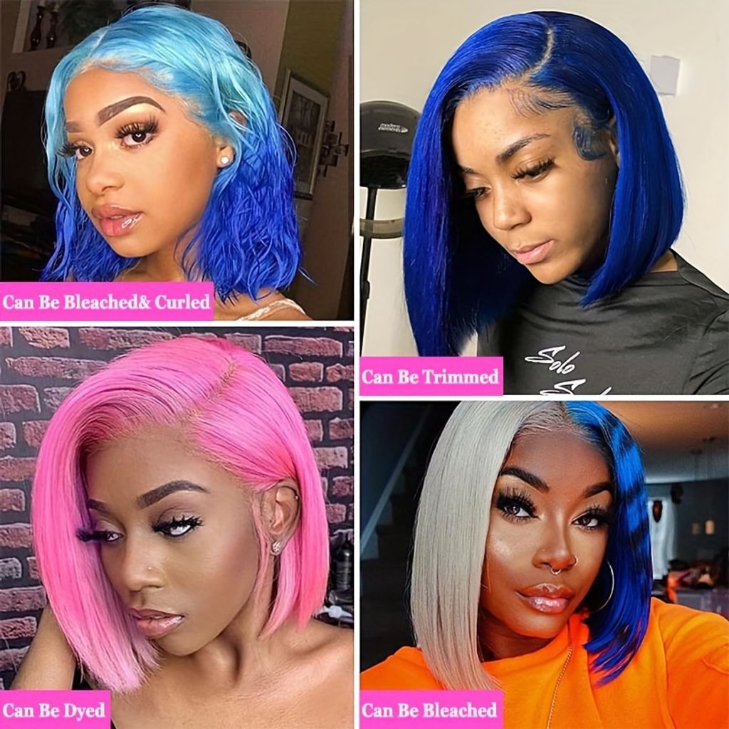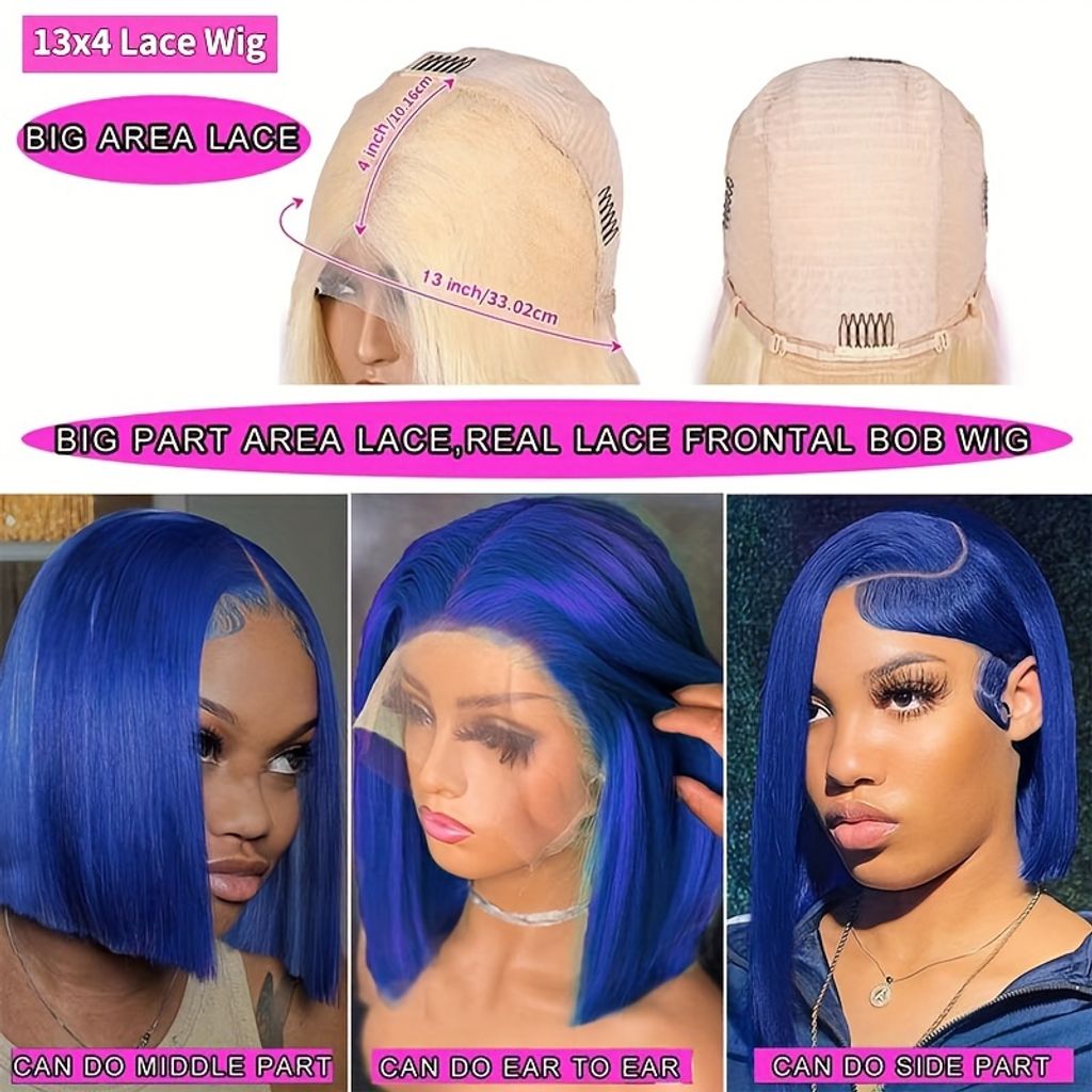 180% Density Short Bob Wigs - 13x4 HD Frontal Lace Wig with Transparent Lace, Natural Hairline, Baby Hair, 100% Unprocessed Human Virgin Hair, Glueless Frontal, Blue Color, Realistic Hairline, Soft and Breathable, No Shedding, No Tangle, Long-Lasting, Perfect for Women