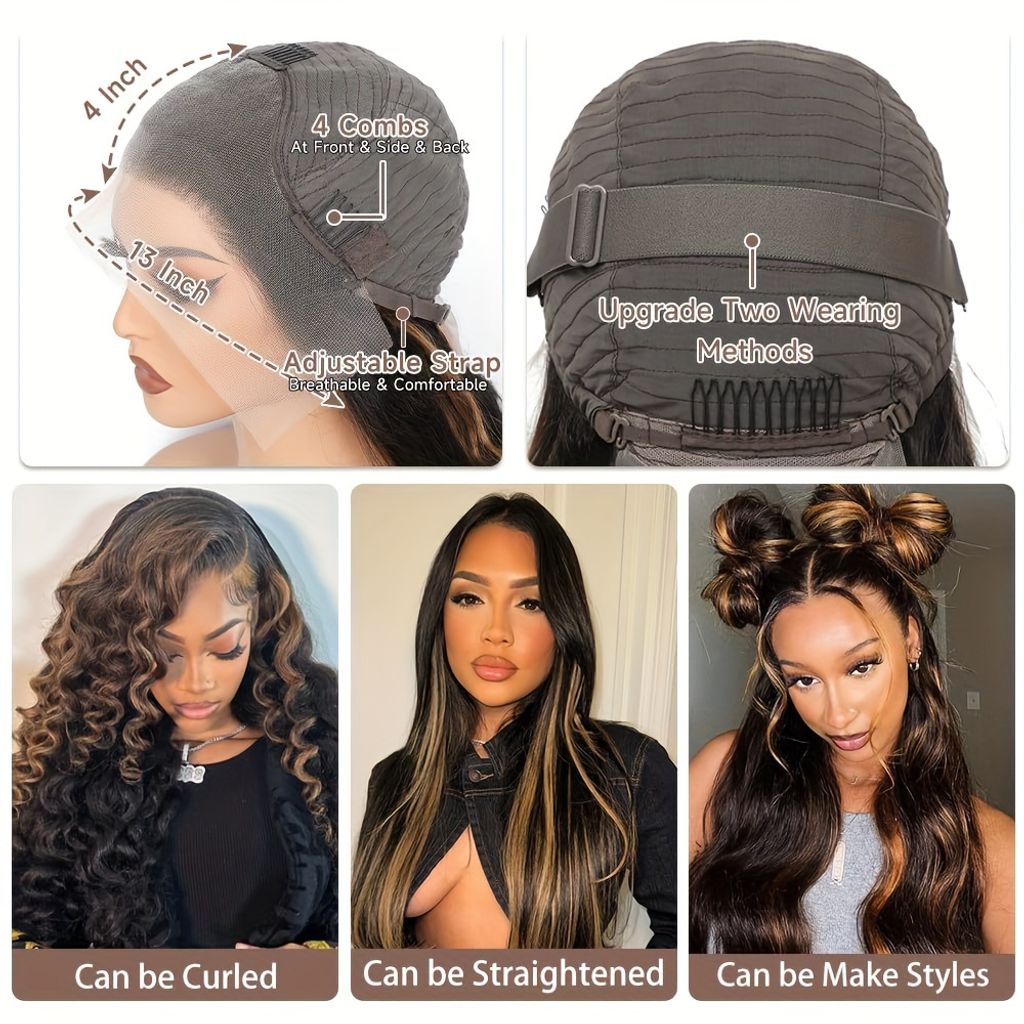 1B/30 Ombre 13x4 Body Wave Lace Front Wigs Human Hair 200% Density Brazilian Virgin Human Hair 13x4 HD Lace Frontal Wigs For Women Pre Plucked Tiny Knots Natural Hairline With Baby Hair