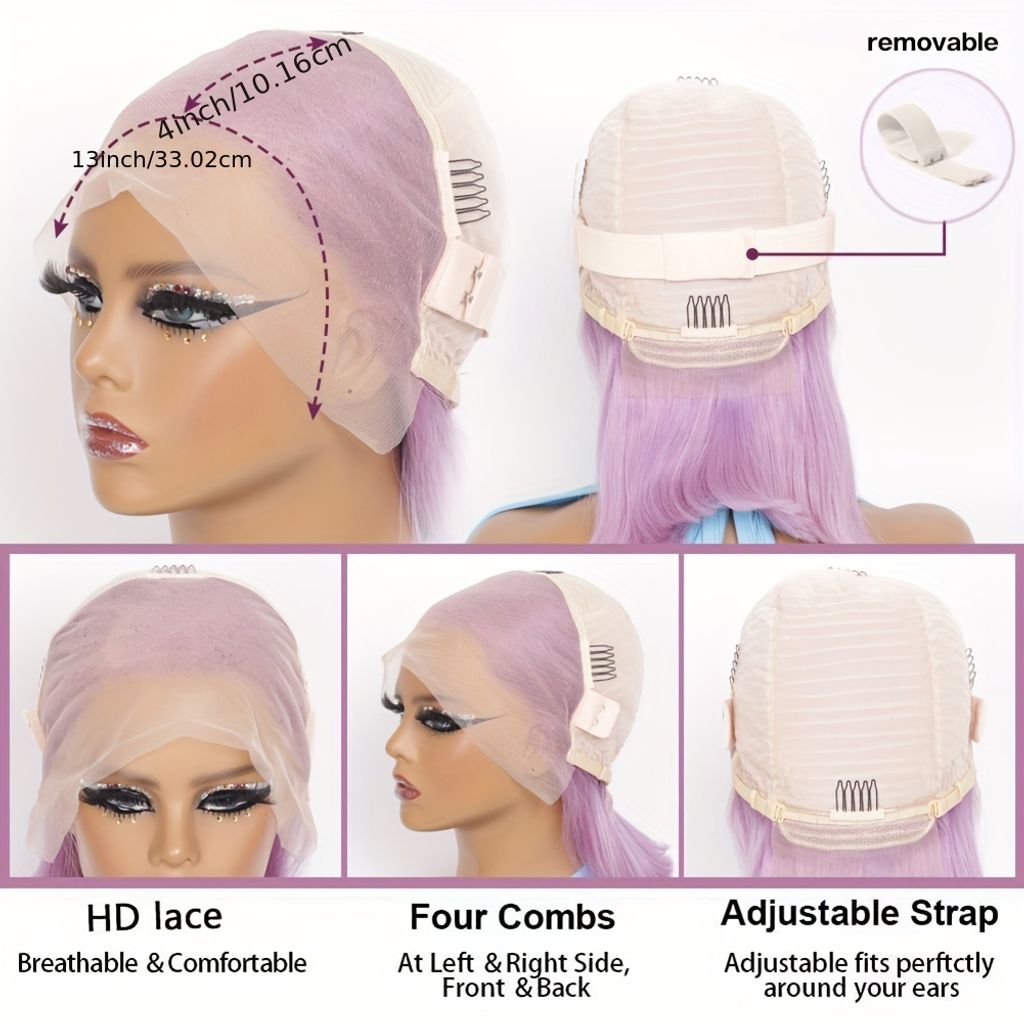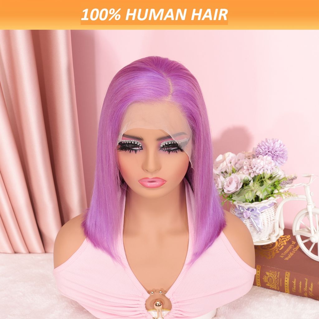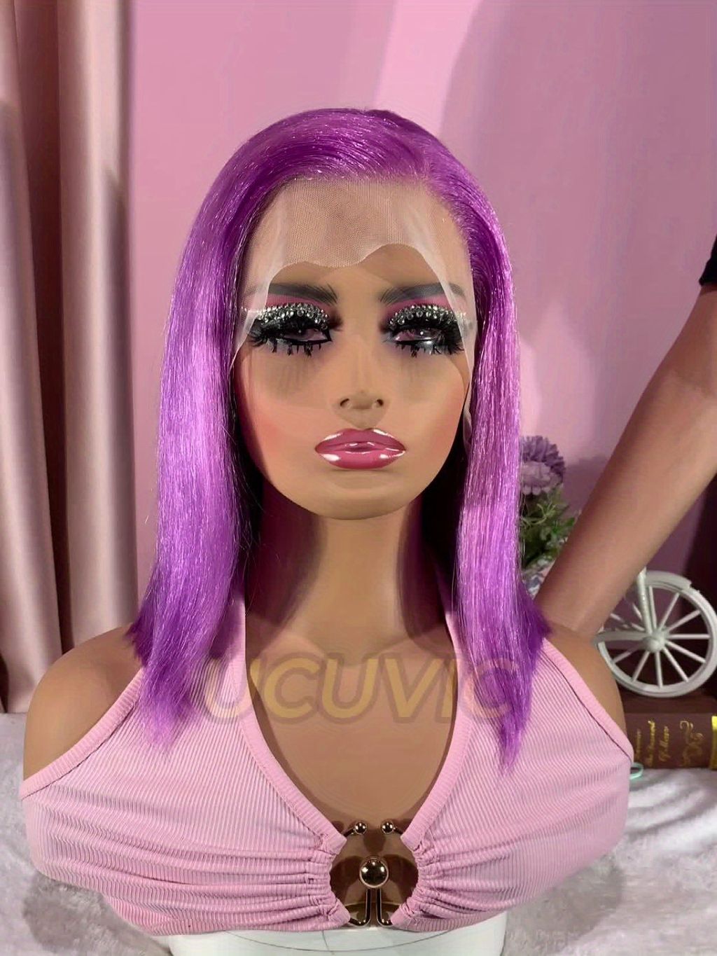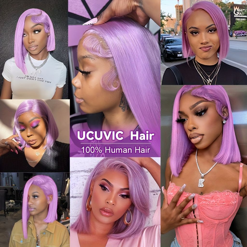 200Density UCUVIC Purple Bob Wig Human Hair 13x4 Hd Lace Front Wigs Human Hair Glueless Wigs Human Hair Pre Plucked Short Cut Straight Brazilian Virgin Human Hair With Baby Hair 12 Inch