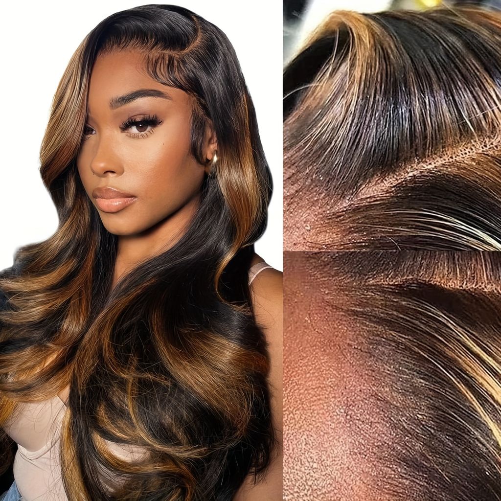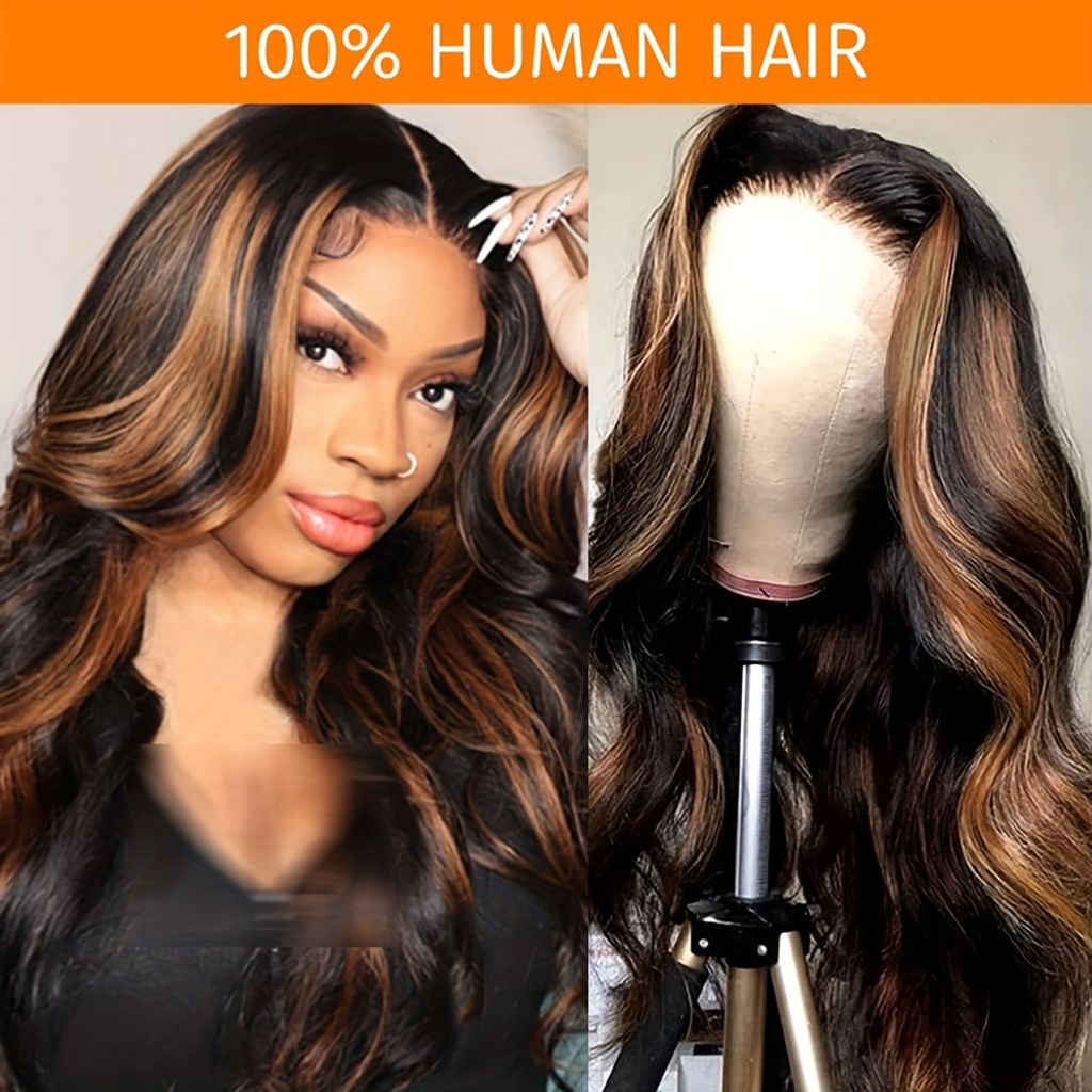 250% Density Human Hair Pre Plucked With Baby Hair 1B/30 13x4 HD Lace Front Wigs Human Hair Highlight Body Wave Lace Frontal Wigs Human Hair Glueless Wigs