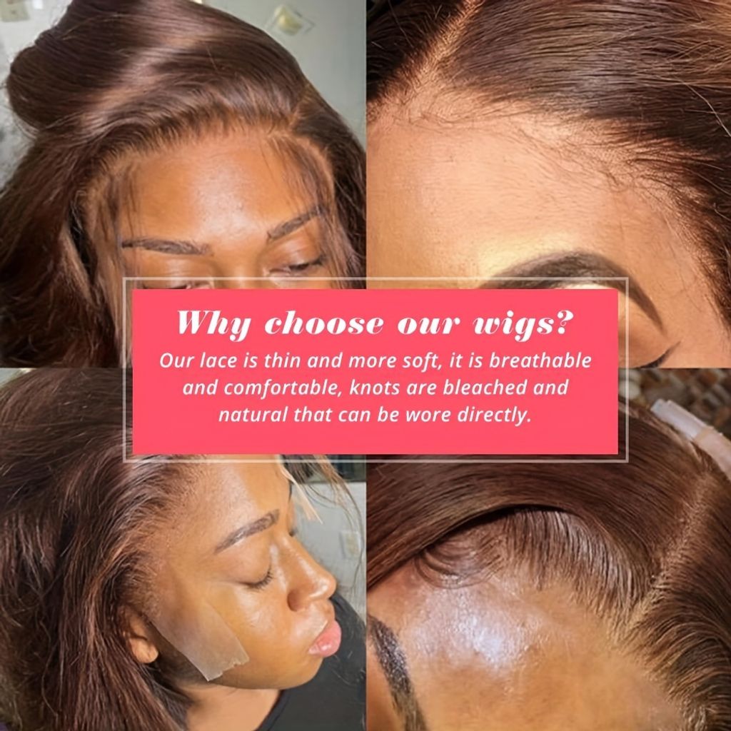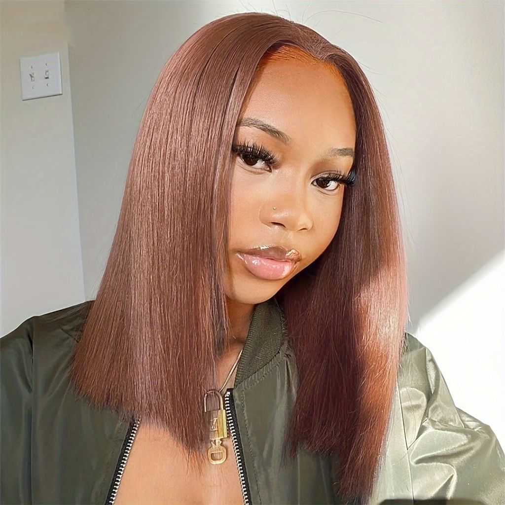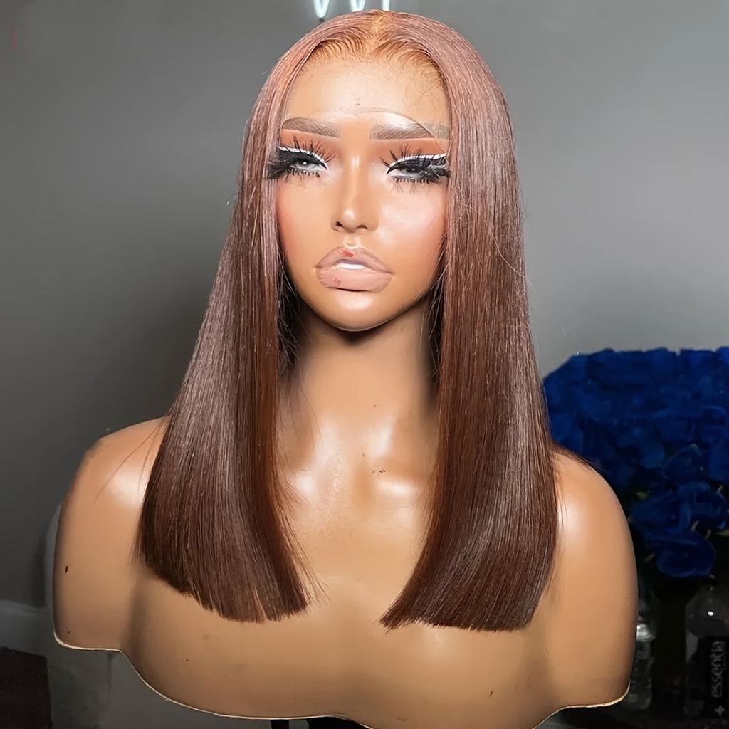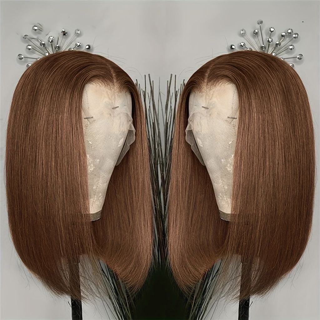 250% Density Short Bob Wigs Human Hair 13X6 HD T Part Lace Front Wigs Straight Lace Frontal Wig Chocolate Brown 100% Brazilian Human Hair 13X6X1 Full Edges Swiss HD Pre Plucked Lace Wig With Baby Hair Dark Brown Color For Women