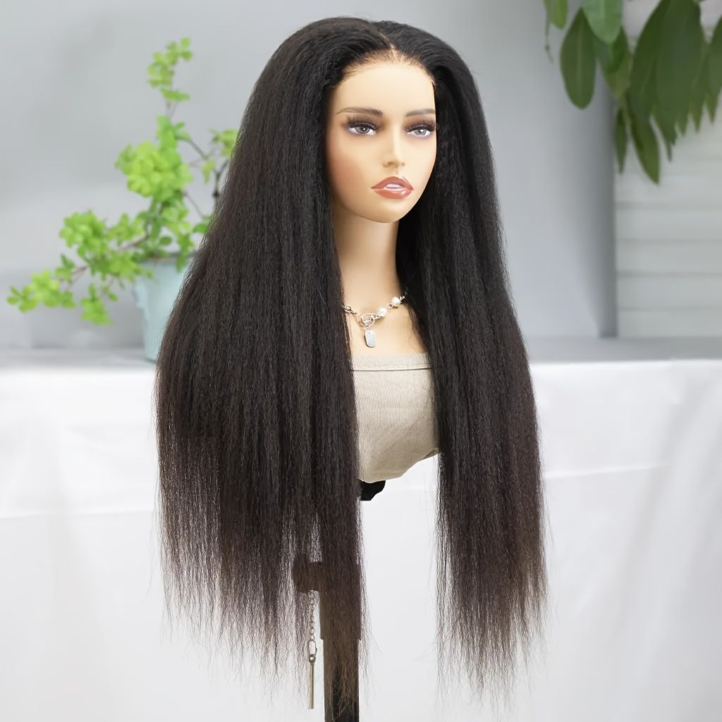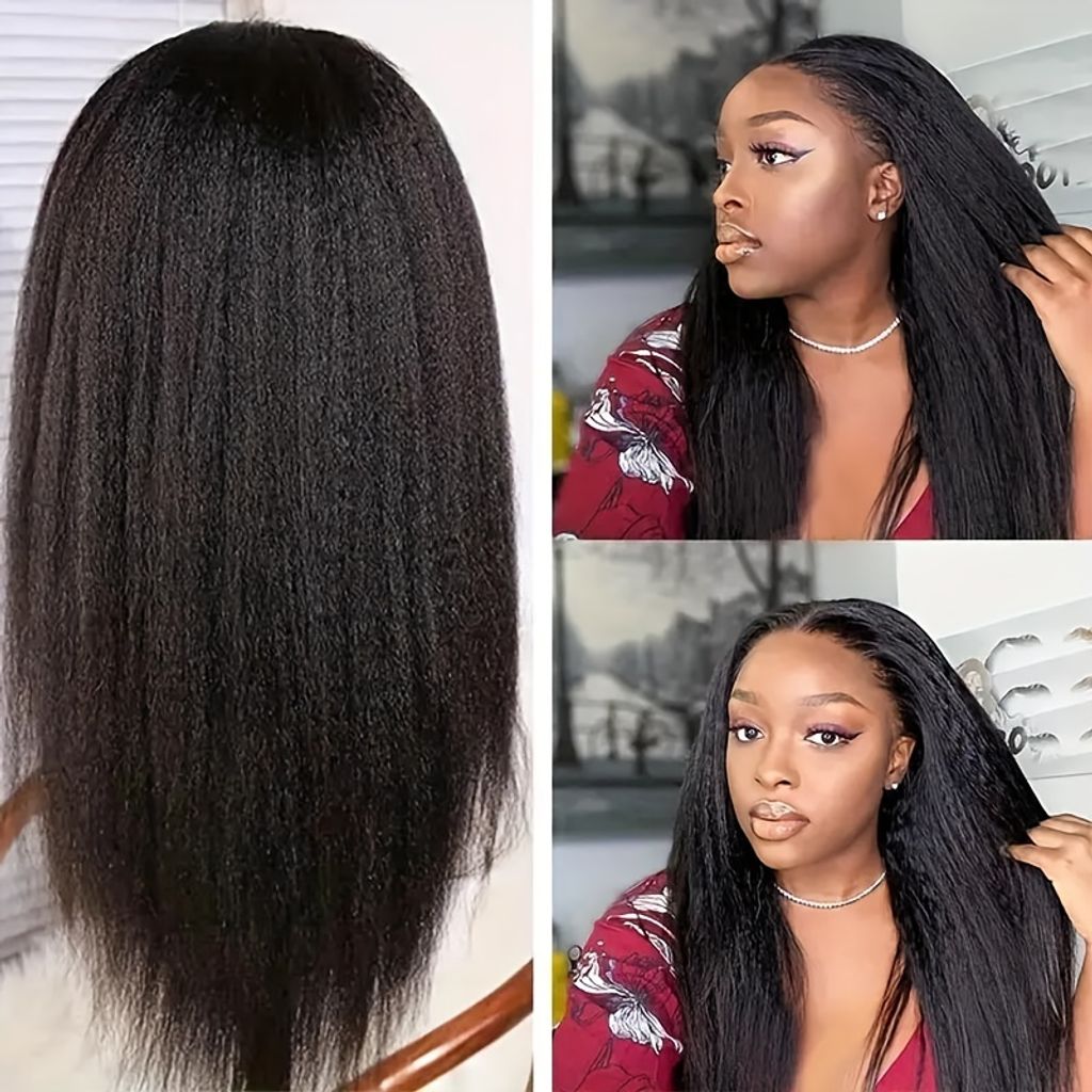 250% Kinky Straight Wig Human Hair For Women Yaki Straight Human Hair Wig Glueless Full Machine Made Braziline Virgin Wigs Human Hair For Beginner
