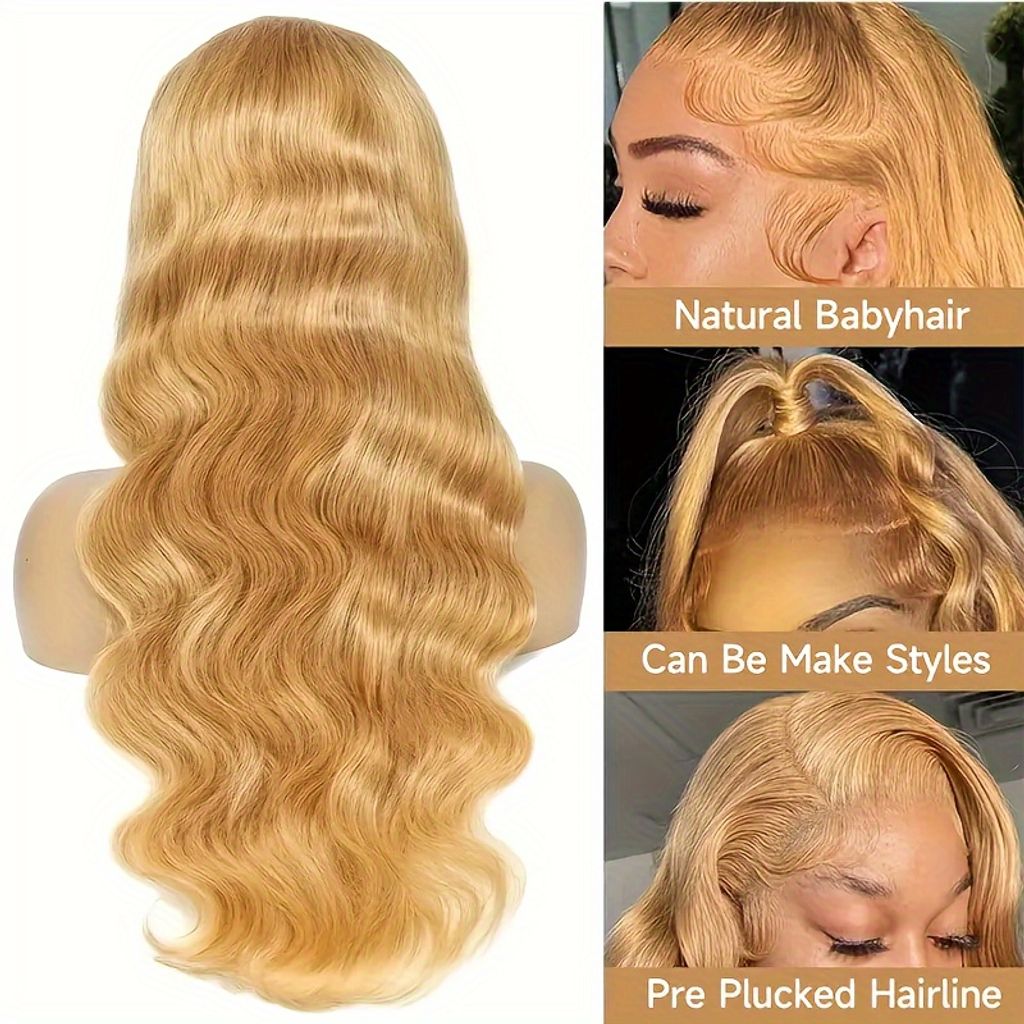27# Honey Blonde Wig Highlight Ombre Blonde 13x6 HD Lace Front Wigs Human Hair Honey Blonde Lace Front Wig Colored Body Wave Pre Plucked Baby Hair Glueless for Black Women