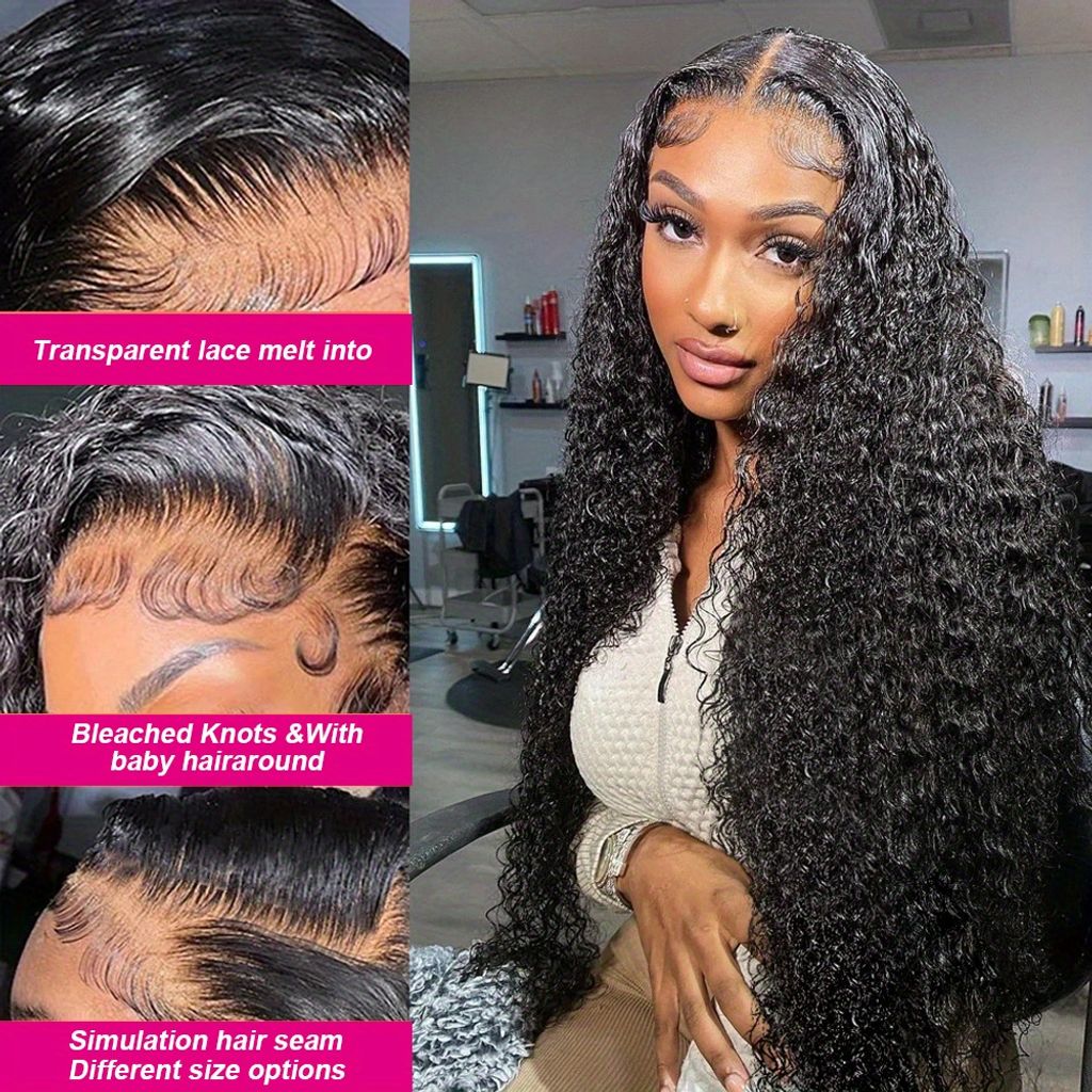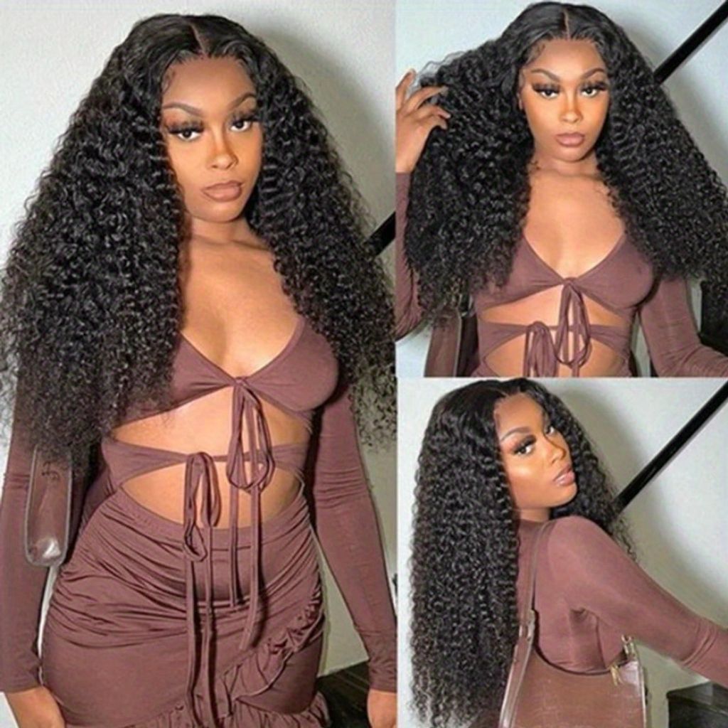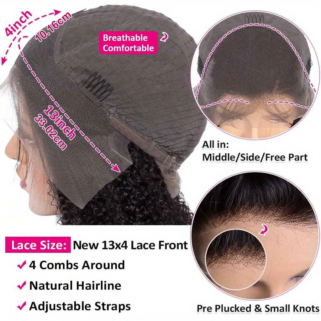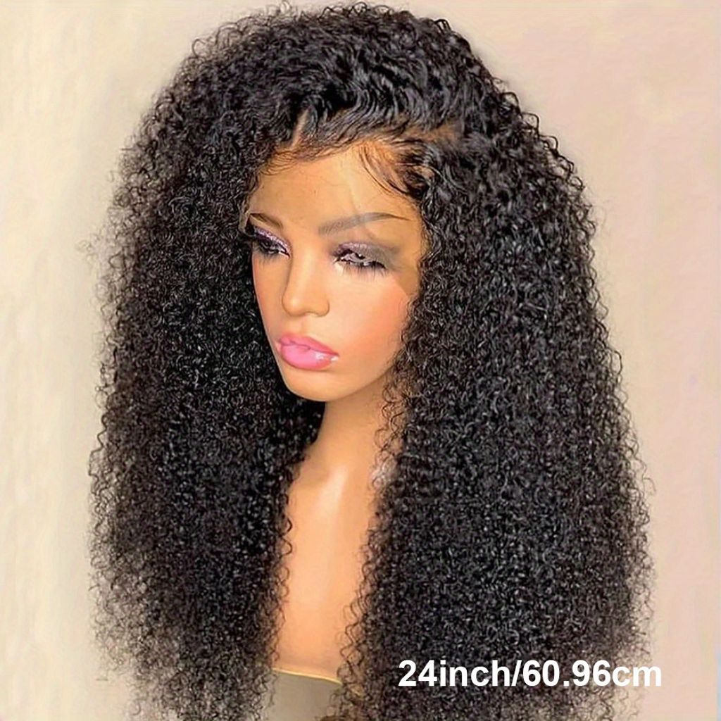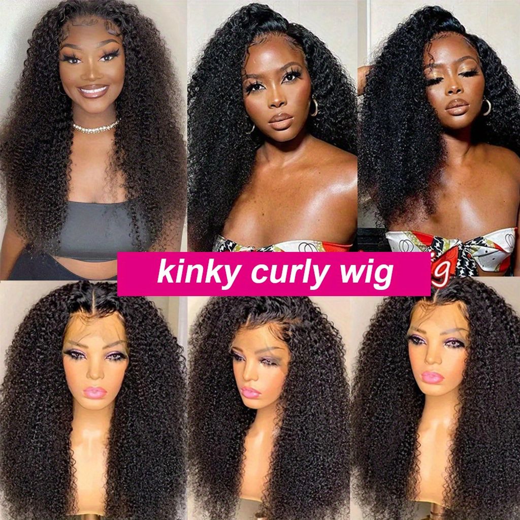 30 Inch 13x4 Kinky Curly Lace Front Wigs Human Hair Wig 250 Density Glueless Wigs Human Hair Pre Plucked Bleached Knots Wigs with Baby Hair Afro Kinky Curly HD Transparent Wigs for Women Virgin Human Hair Black Color