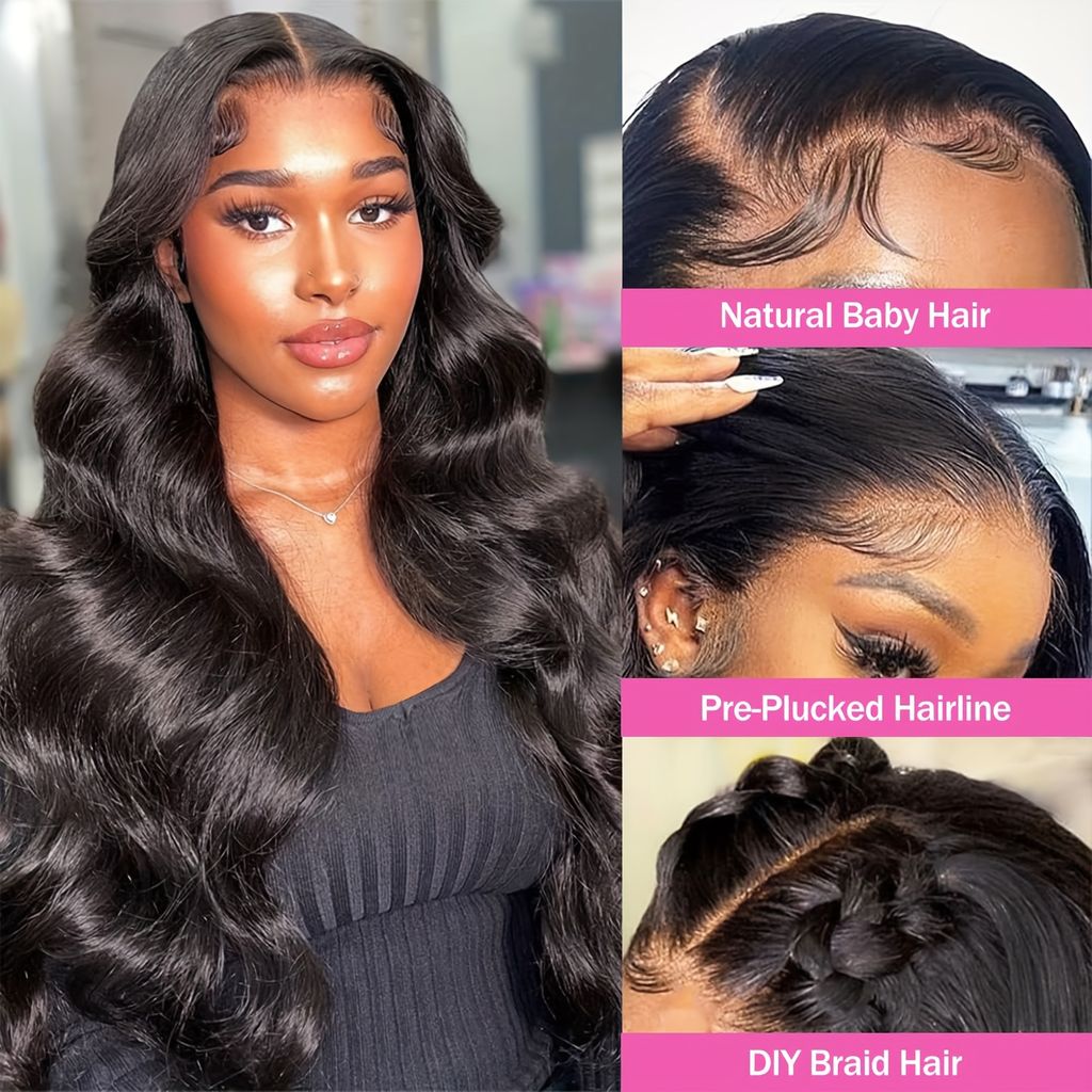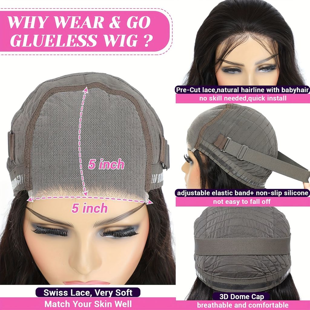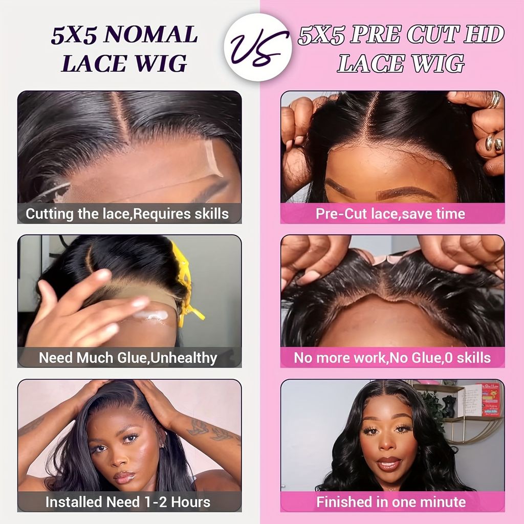 300% Density 5x5 Invisible HD Lace Front Human Hair Wig Put Cut Wear And Go Body Wave Lace Closure Wigs Bye Bye Knots Glueless Pre Plucked Virgin Brazilian Human Hair Long Burmese Wig With Baby Hair