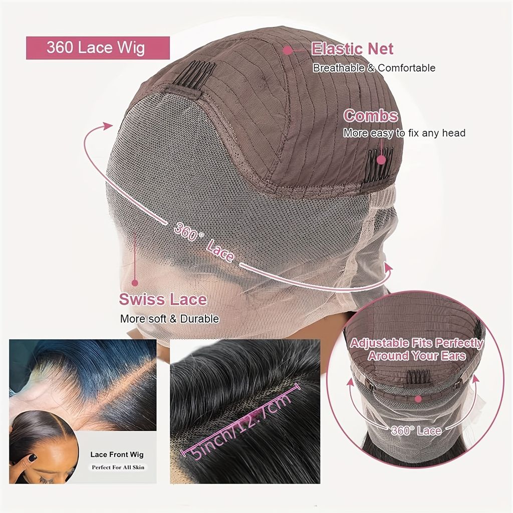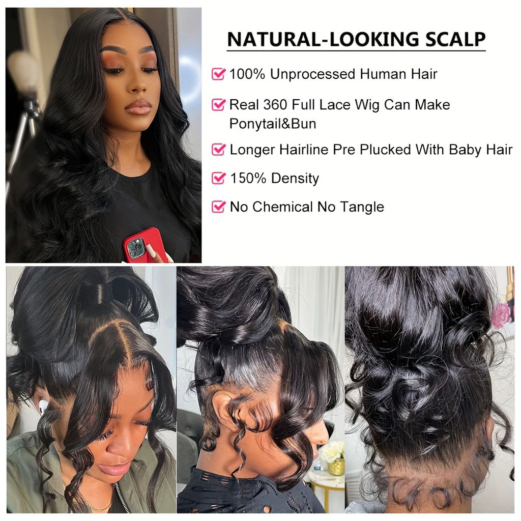 360 Lace Front Wigs Pre Plucked 180% Density Human Hair 360 Full HD Lace Frontal Wigs Body Wave Wig For Women With Baby Hair Natural Color (16-34 Inch, Natural Color )