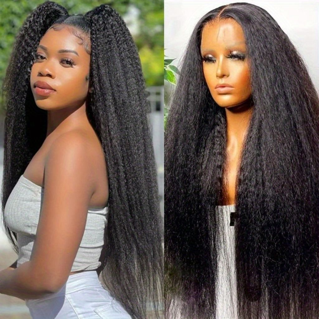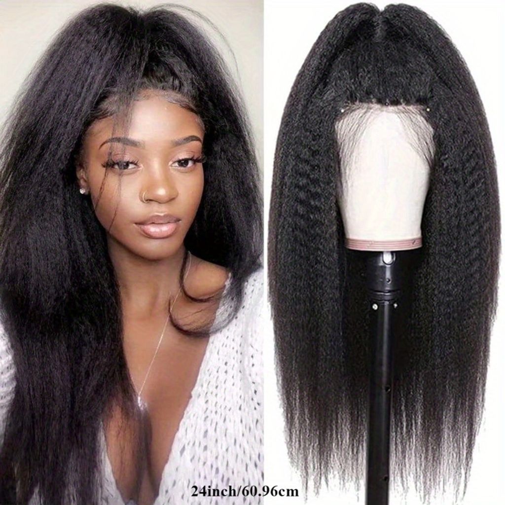 5x5 HD Transparent Lace Closure Glueless Wigs Kinky Straight Human Hair Wig for Black Women 200% Density 24Inch Brazilian Yaki Straight Virgin Hair Lace Closure Wig Pre-Plucked with Baby Hair Natural Color