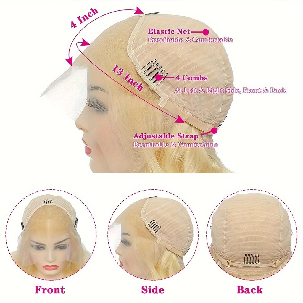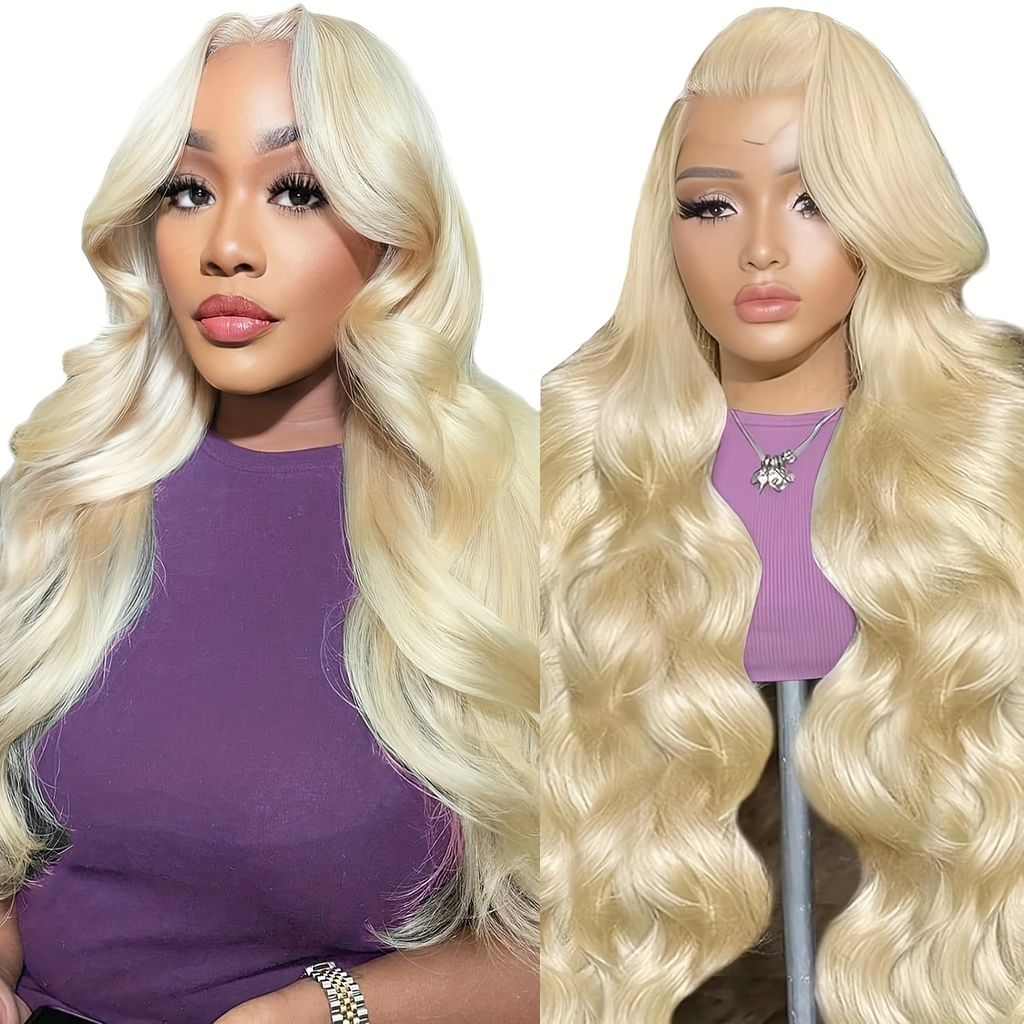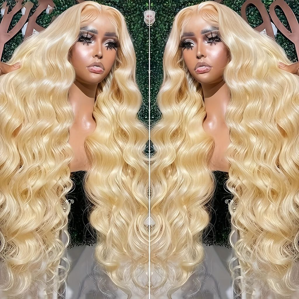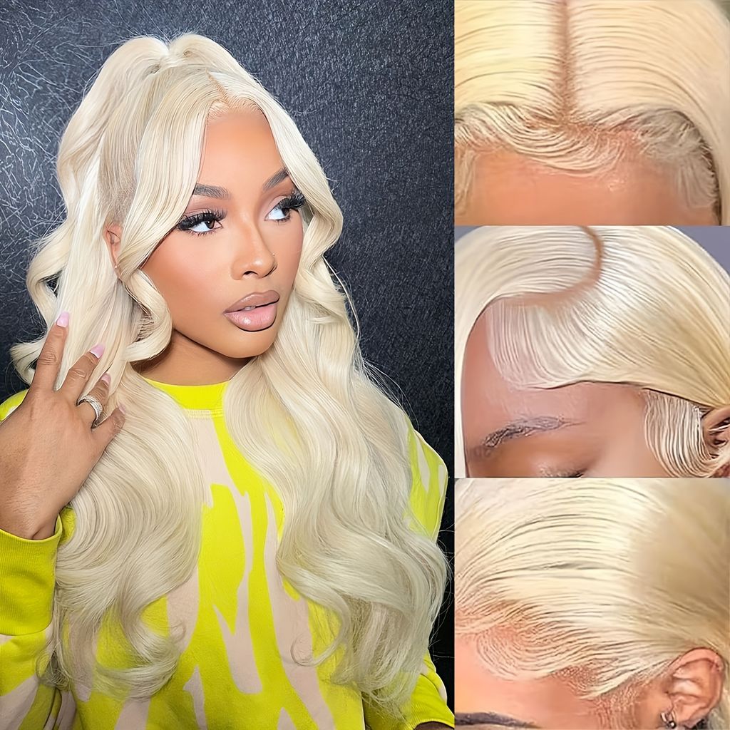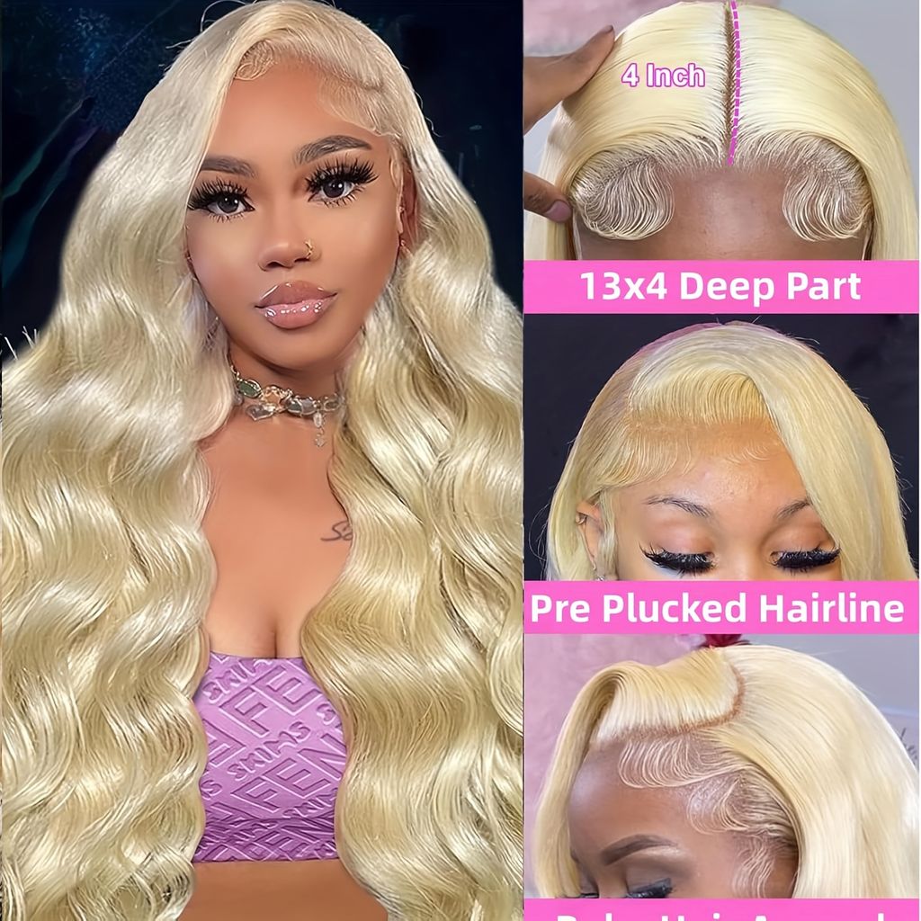 613 Blonde 13x4 HD Transparent Lace Front Wigs Human Hair 200% Density Body Wave Frontal Wigs Human Hair Glueless Wigs Human Hair Pre Plucked For Women Bleached Konts Colored Wigs 28 Inch