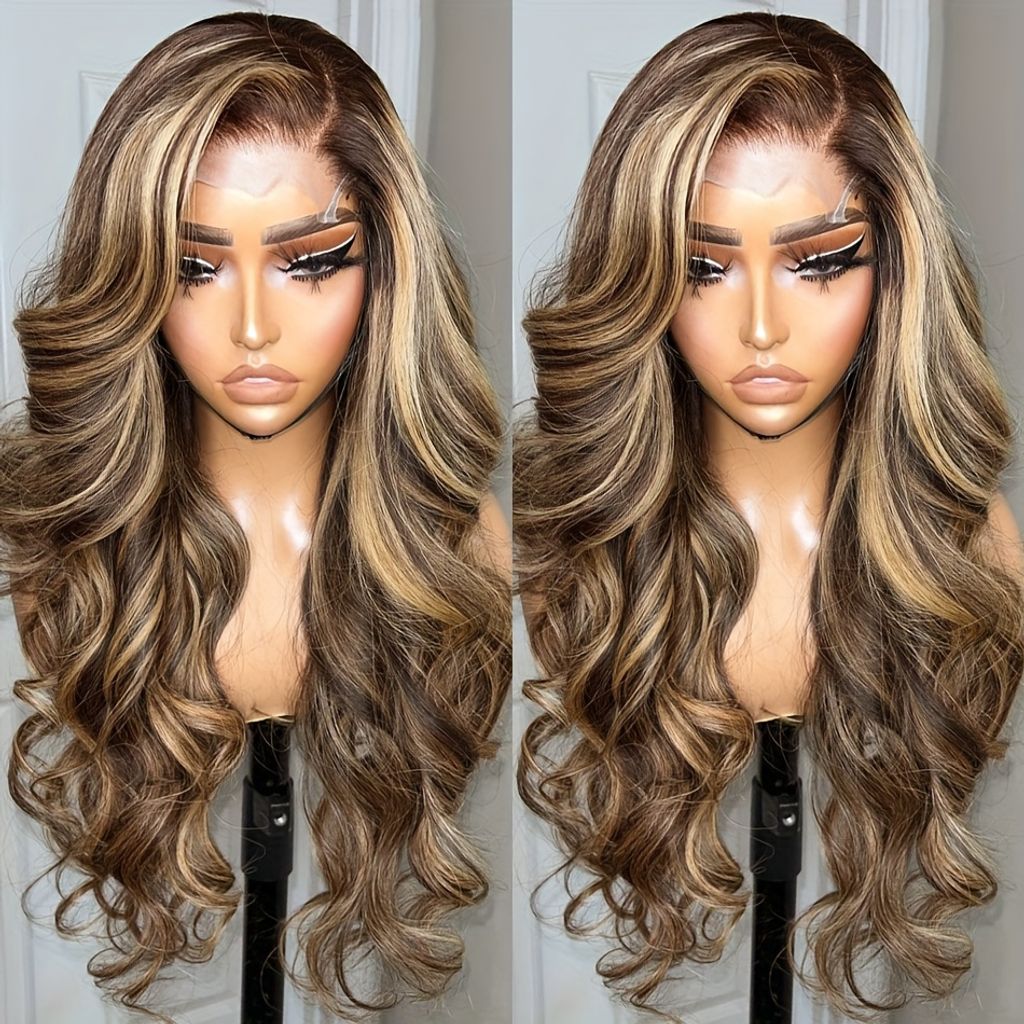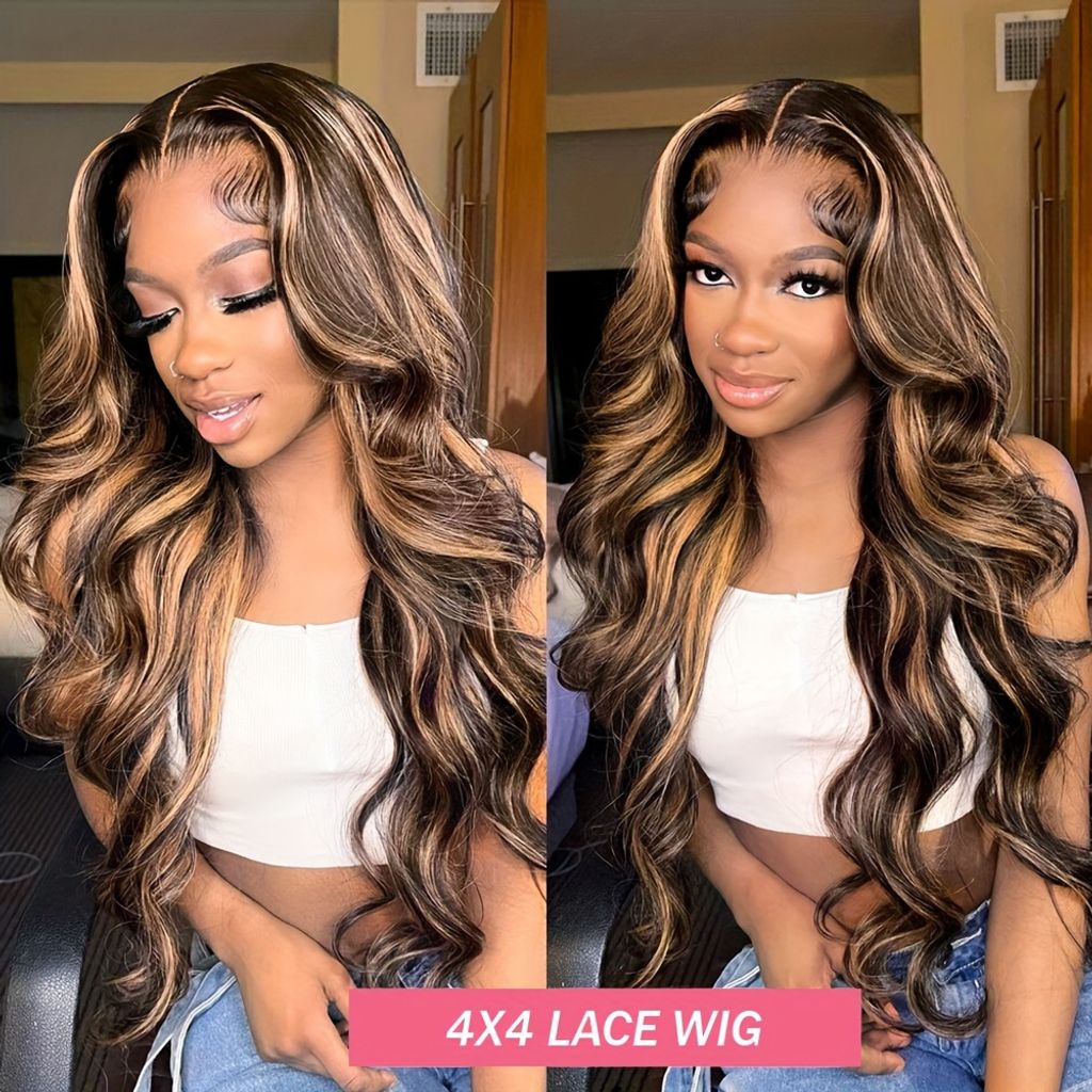 Blonde Highlight body Wave HD 4x4 Lace Closure Human Hair Wig Lace Front Human Hair Wig Women High Gloss Glueless 4/27 Wig For Women