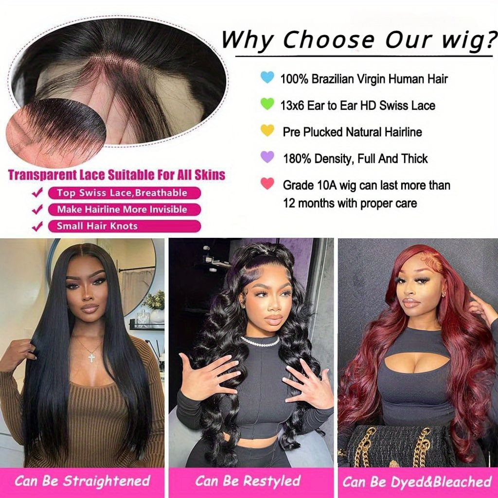 Body Wave Lace Front Wigs Human Hair Pre Plucked 200 Density 13x6 HD Transparent Frontal Wigs Glueless Wigs Human Hair Lace Front Wig for Black Women with Baby Hair Natural Black