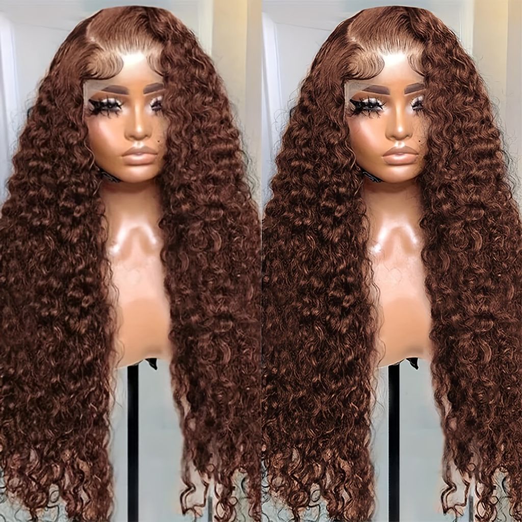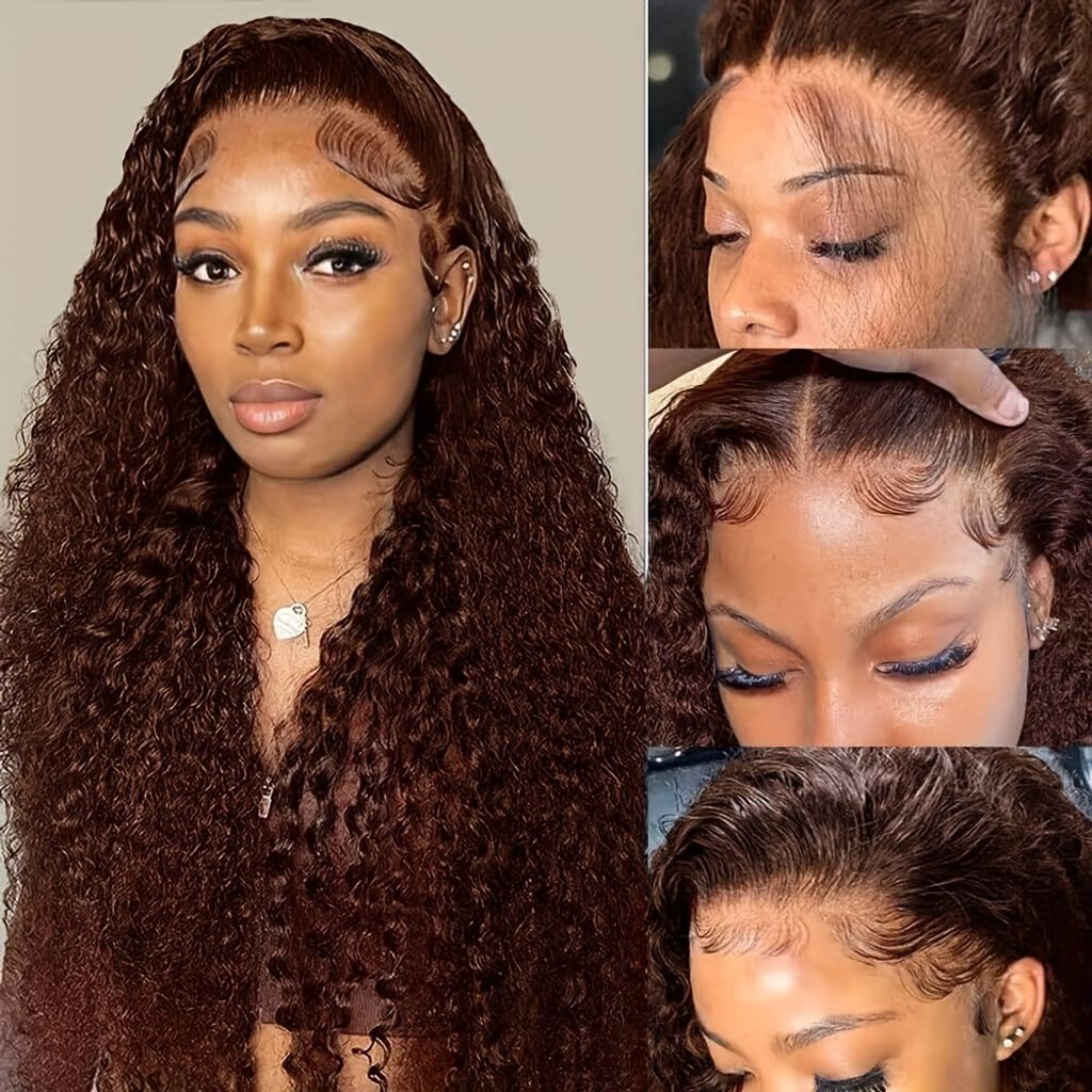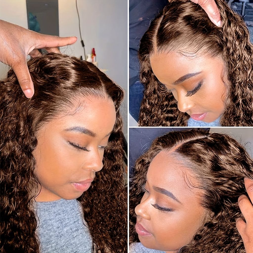 Chocolate Brown Lace Front Wig Human Hair 4x4 Water Wave Lace Front Wigs Human Hair Pre Plucked 180 Density HD Lace Frontal Curly Wigs Human Hair Colored Brown Wavy Wig Human Hair