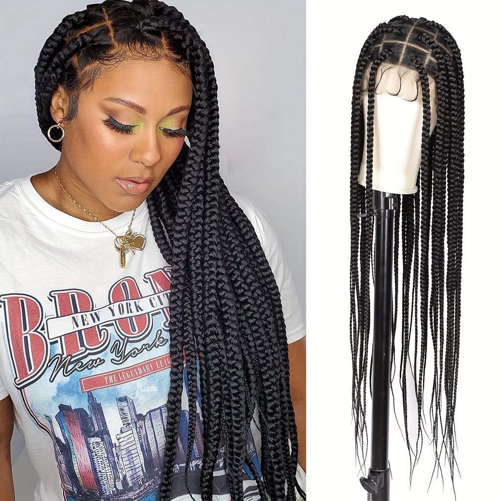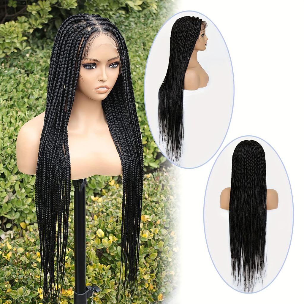 Full Lace Hand-Crafted Lace Front Wig Majestic Extra-Long Tail Curly Braids Lace Frontal Braided Wigs Curly Braids Wig with Baby Hair for Women