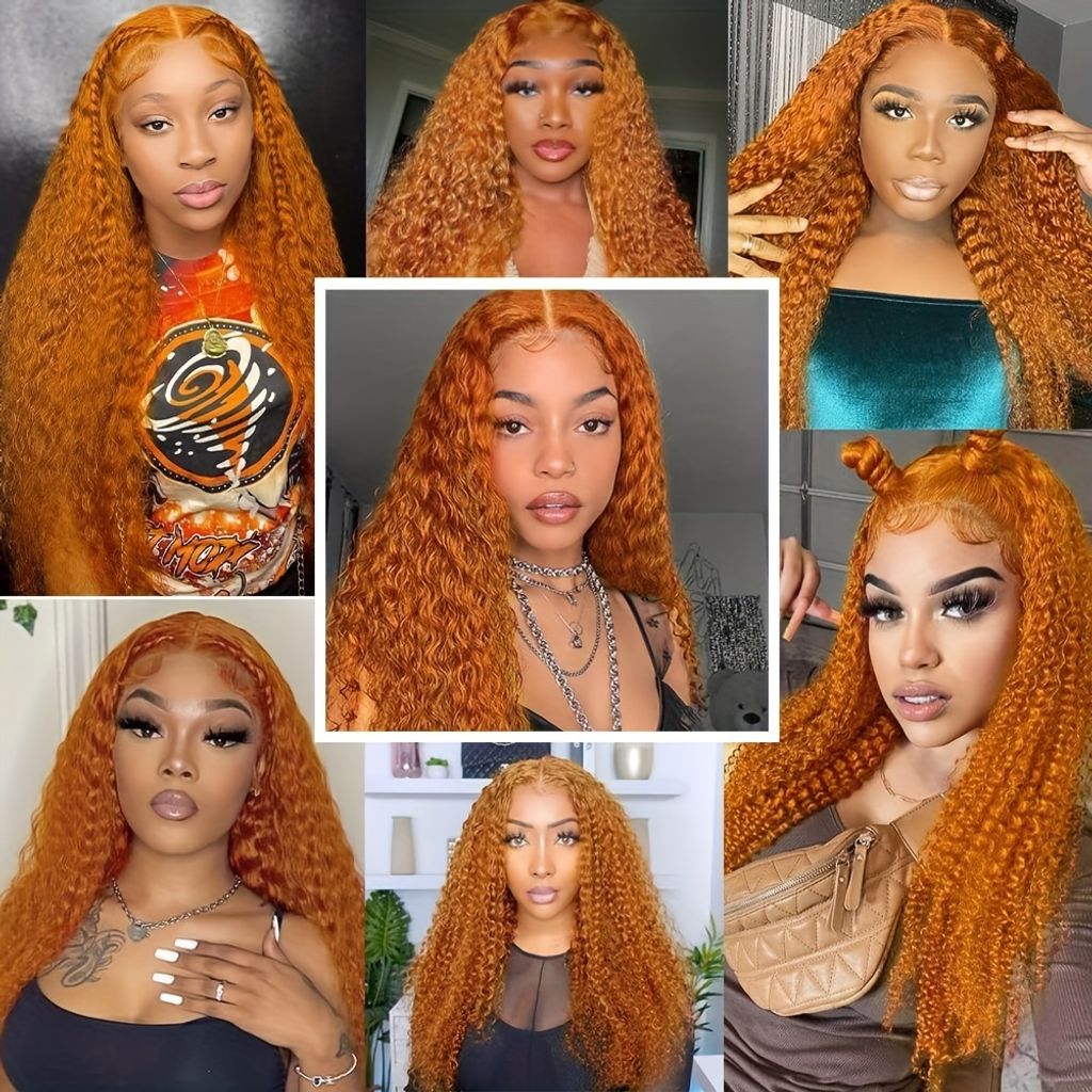 Ginger Lace Front Wigs Human Hair 13x6 Hd Lace Ginger Curly Wigs Human Hair 180% Density Ginger Orange Deep Wave Lace Front Wig Pre Plucked Burnt Orange Human Hair Wig For Women Colored Wig 20 22 24 26 28 30 32 34 Inch