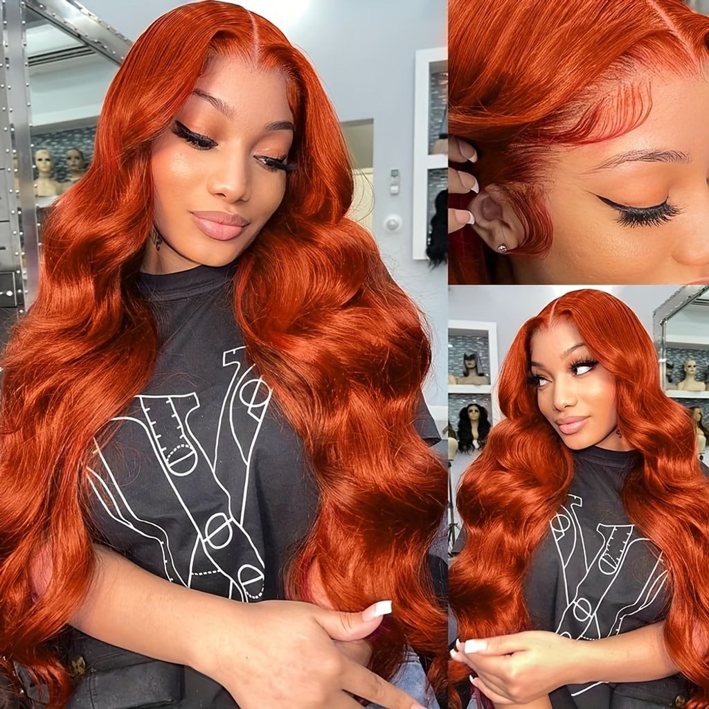 Ginger Orange Lace Front Wigs Human Hair Body Wave Wavy 13x4 HD Lace Front Ginger Glueless Wigs Human Hair 250% Density Transparent Lace Frontal Human Hair Wigs Pre Plucked With Baby Hair