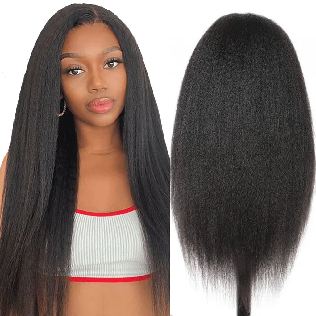Glueless Wigs Human Hair Pre Plucked Pre Cut 6x6 Kinky Straight HD Lace Closure Wigs Human Hair Kinky Straight Wig For Beginners 200% Density
