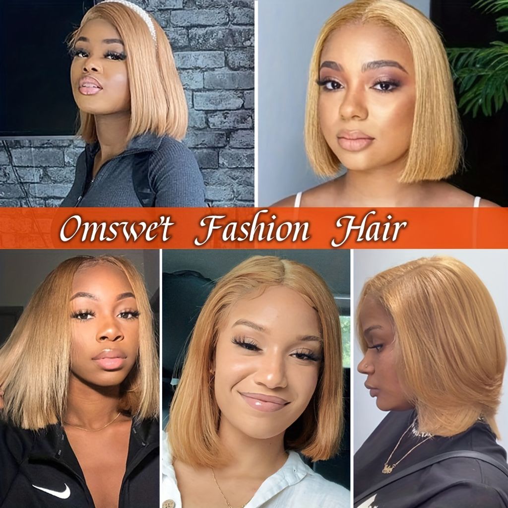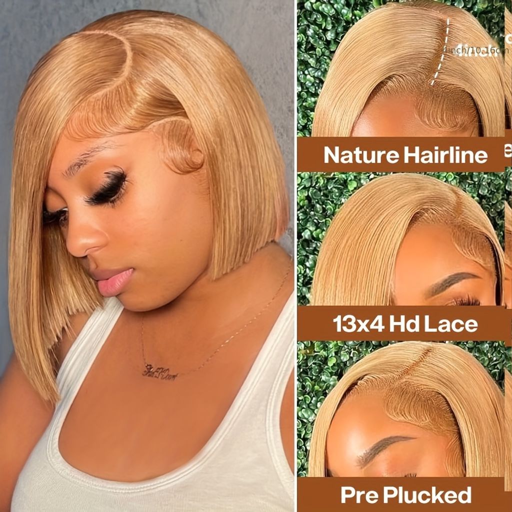 180% Density 13x4 HD Lace Front Honey Blonde Bob Wig - Straight Hair, Pre-Plucked with Baby Hair, Elegant Style for African Women - 12 Inch Short Bob with Natural Looking Hairline