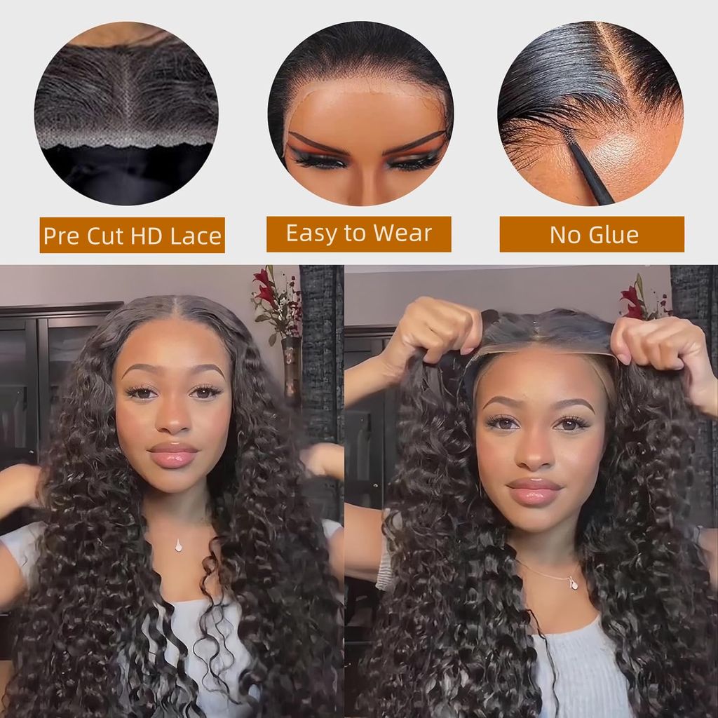 Put On And Go Glueless Wigs Human Hair Pre Plucked Pre Cut 7x5 Deep Wave Lace Closure Wigs Human Hair Upgraded Glueless Wig Ready To Wear Glueless HD Lace Front Wigs For Women