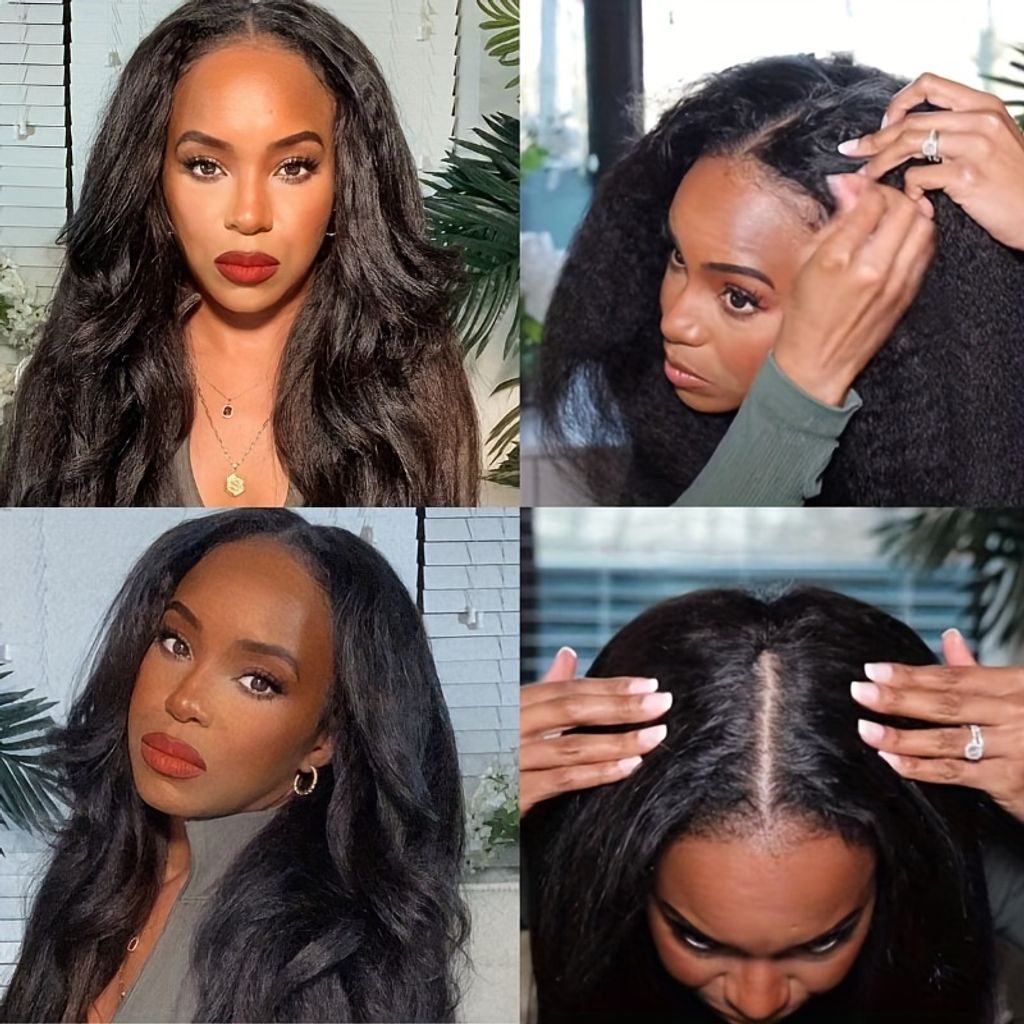Nadula V Part Yaki Straight Glueless Human Hair Wigs Light Kinky Straight Upgrade U Part Human Hair V Shape Wig Beginner Friendly Easy To Wear 150% Density