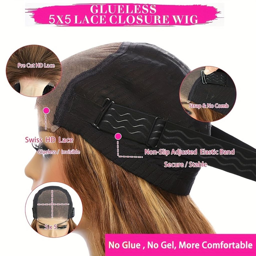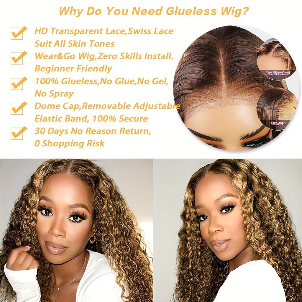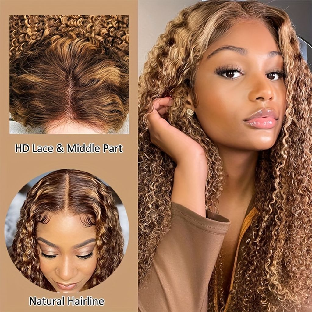Glueless Wig Water Wave Lace Front Wigs Human Hair Ombre Brown Mix Highlight Honey Blonde Colored 4/27 Wig 5x5 HD Transparent Lace Closure 180% Density Full&Thick Hair